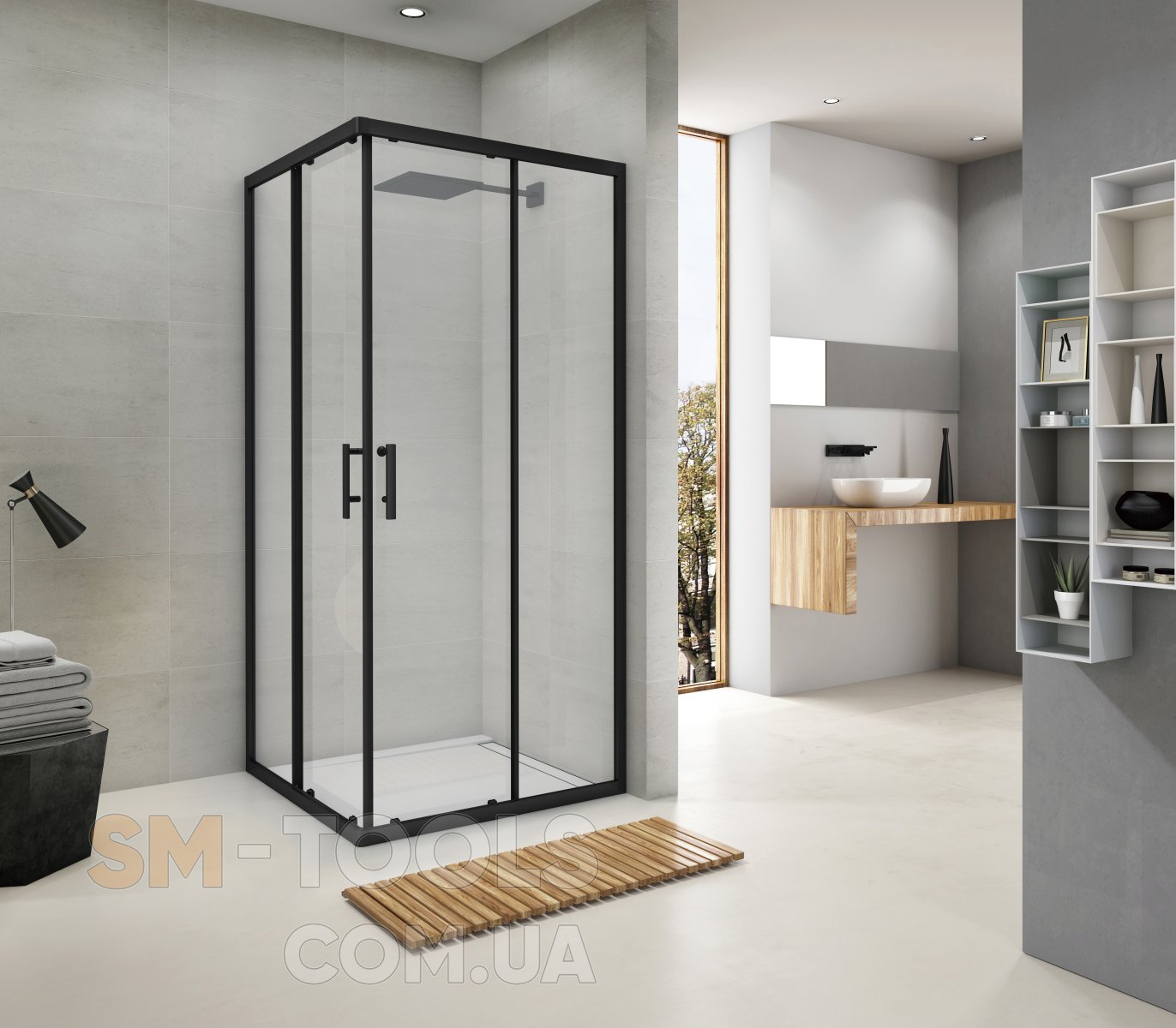 Душова кабіна GRACE квадратна чорна 900x900x1900 мм, скло прозоре (G90SCB)