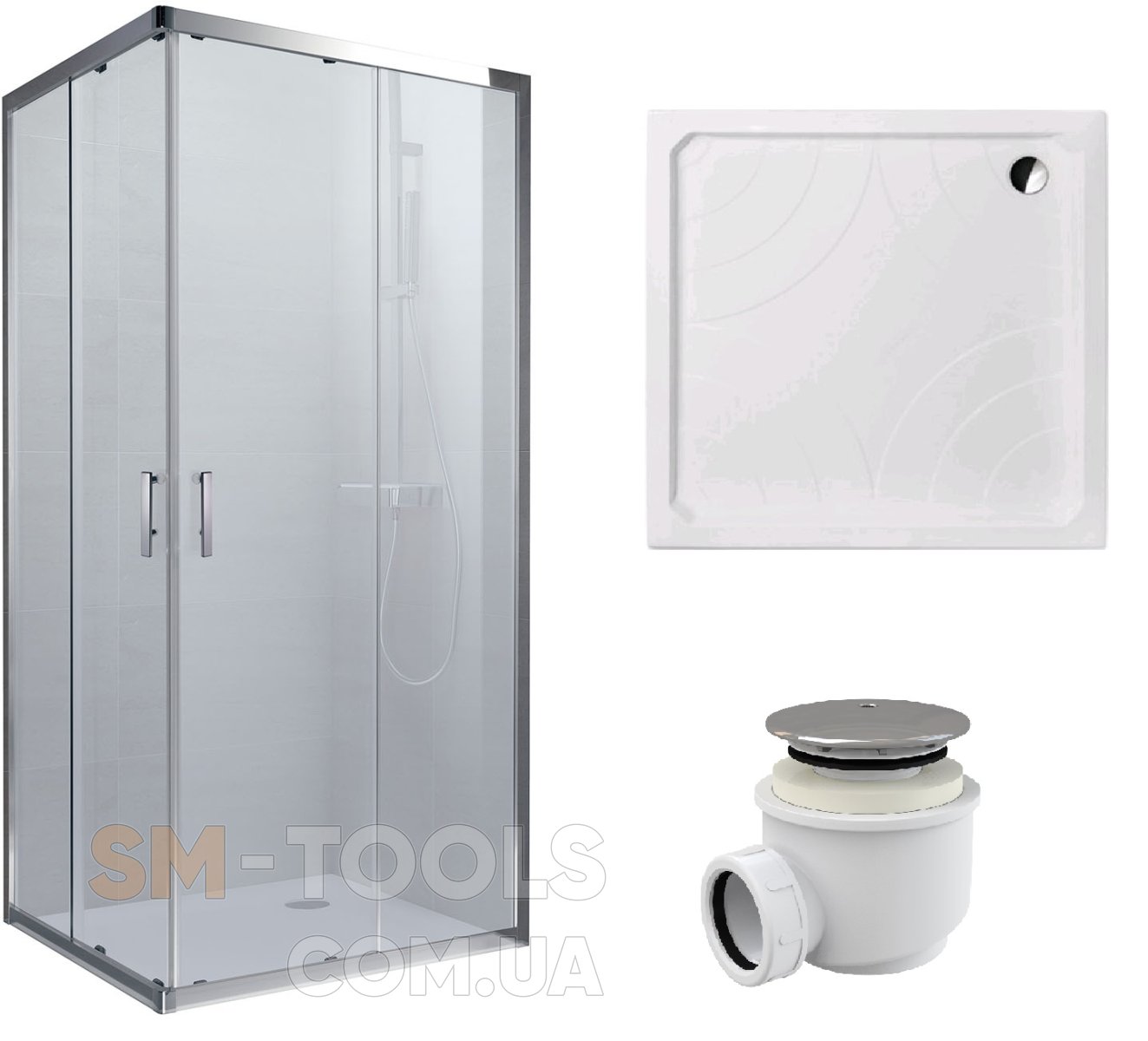 Душова кабіна Koller Pool GRACE квадратна 900x900x1900 мм прозоре + піддон Grace 900х900 квадр + сифон A47CR-60 (G90SC+GRACE90S+A47CR-60)