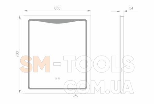 Вологостійке дзеркальне полотно забезпечує високоякісне відображення при будь-якому куті зору. В дзеркалі встановлений годинник з кнопкою налагодження та сенсорний вмикач на помах руки.