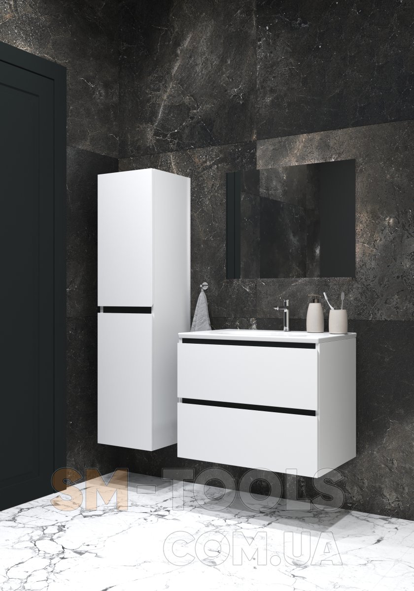Колекція ORION – біла тумба консольна на дві шухляди з чорними вставками. Умивальник - литий мармур. Можлива ширина тумби: 70 / 80 / 90 см.