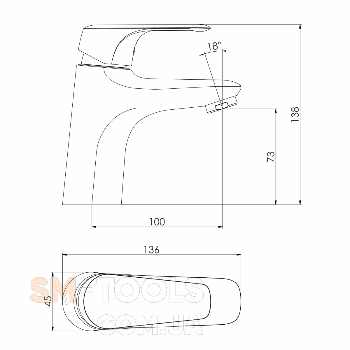 Висота виливу, мм: 73