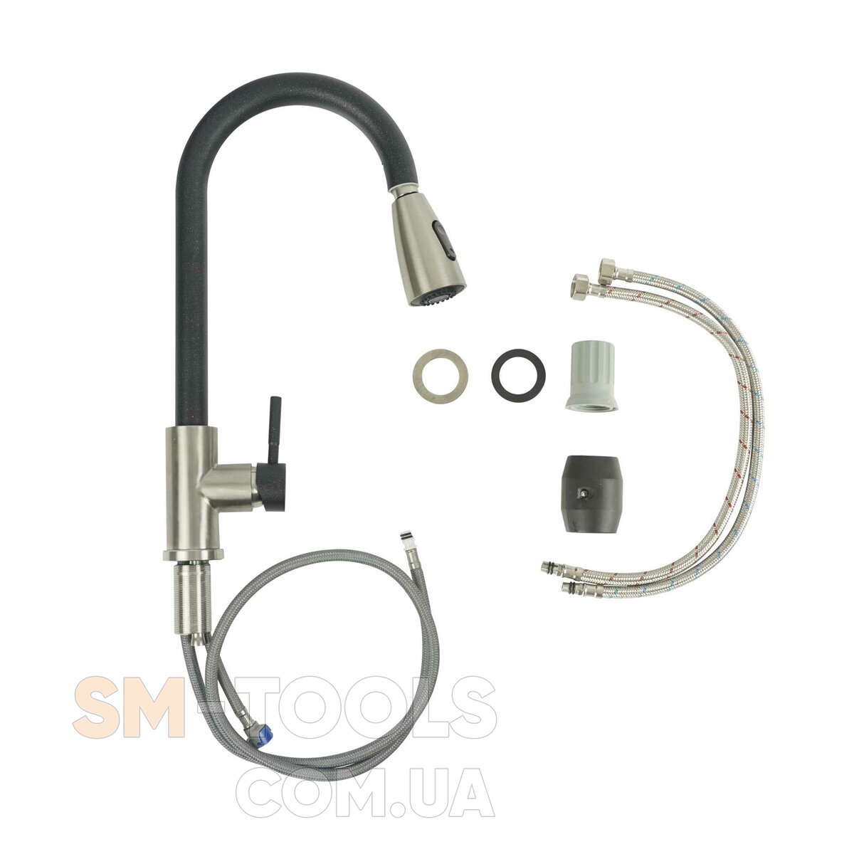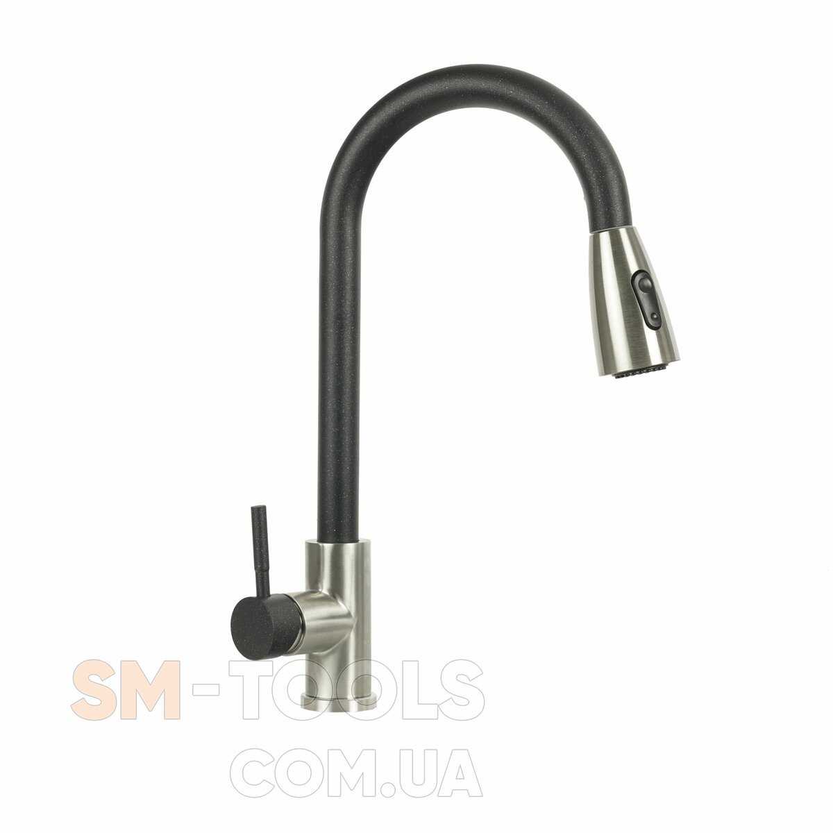 Змішувач з висувним виливом Platinum KT 8203 (8614) Чорний металік комбі