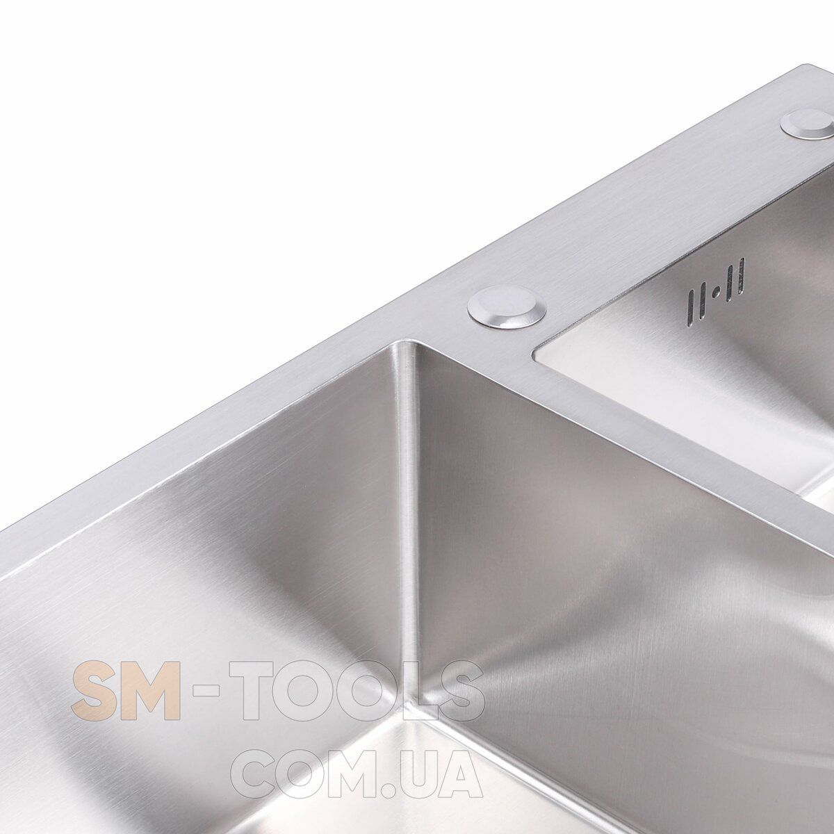 Опис Кухонна мийка 75*41 нержавійка на дві чаші Platinum Handmade (круглий сифон, 3.0/0.8)