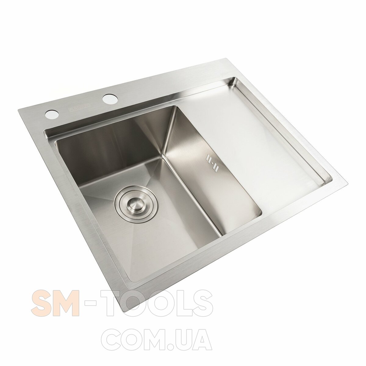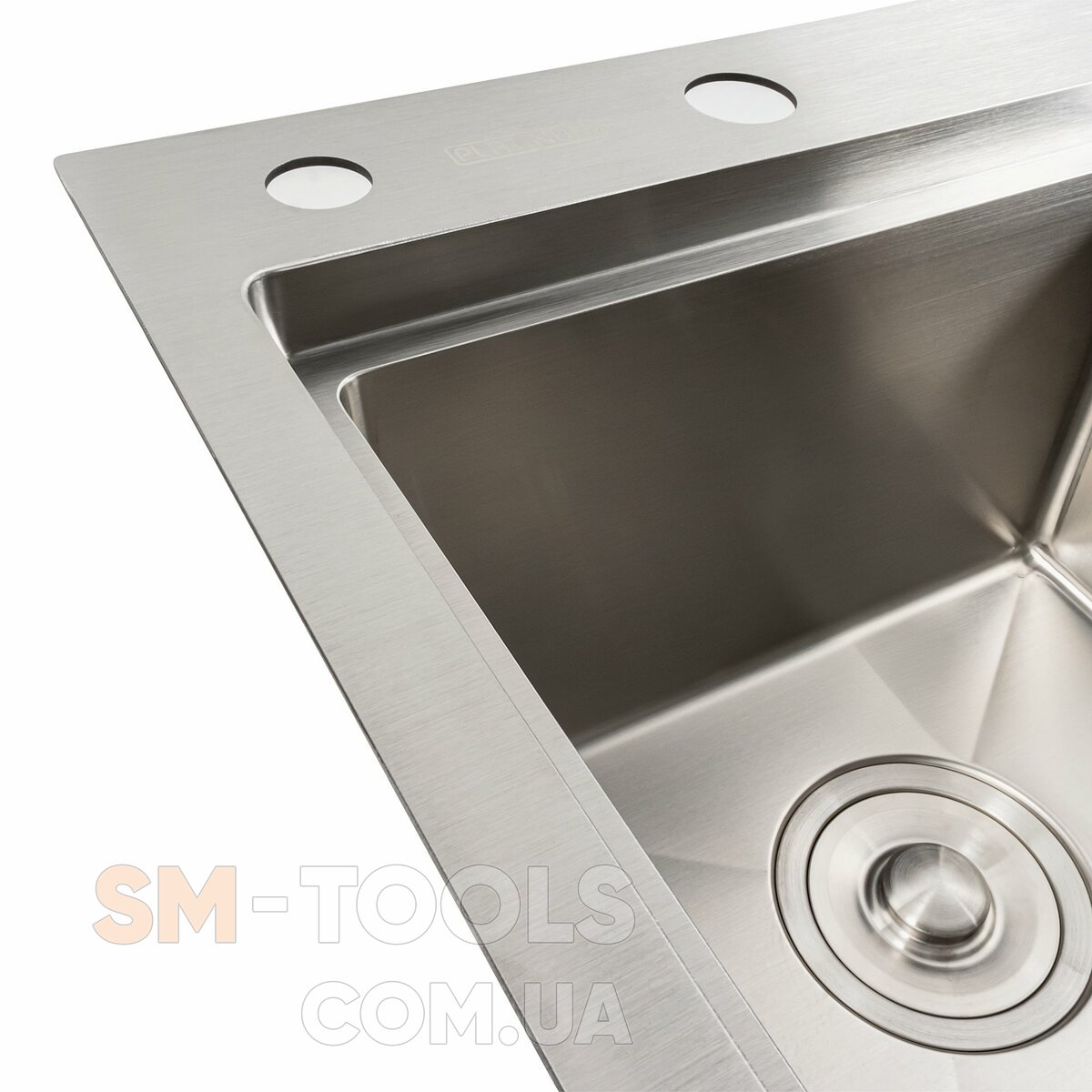 Кухонна мийка нержавійка 58*48 L Platinum Handmade (два отвори, круглий сифон 3,0/0,8)