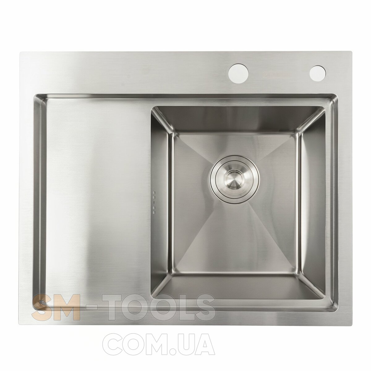 Кухонна мийка нержавійка 58*48 R Platinum Handmade (два отвори, круглий сифон 3,0/0,8)
