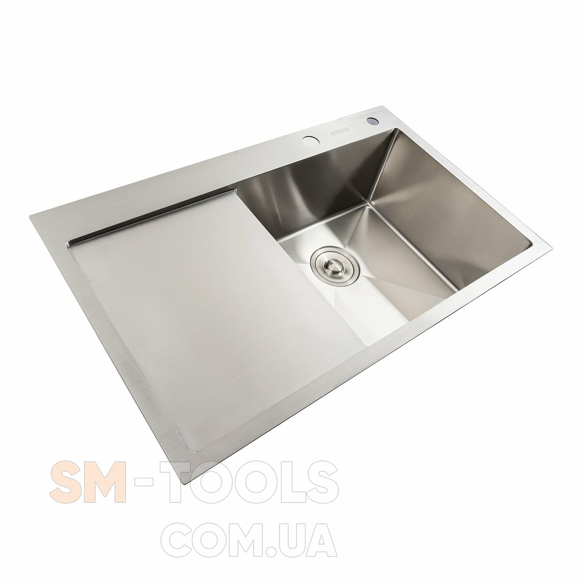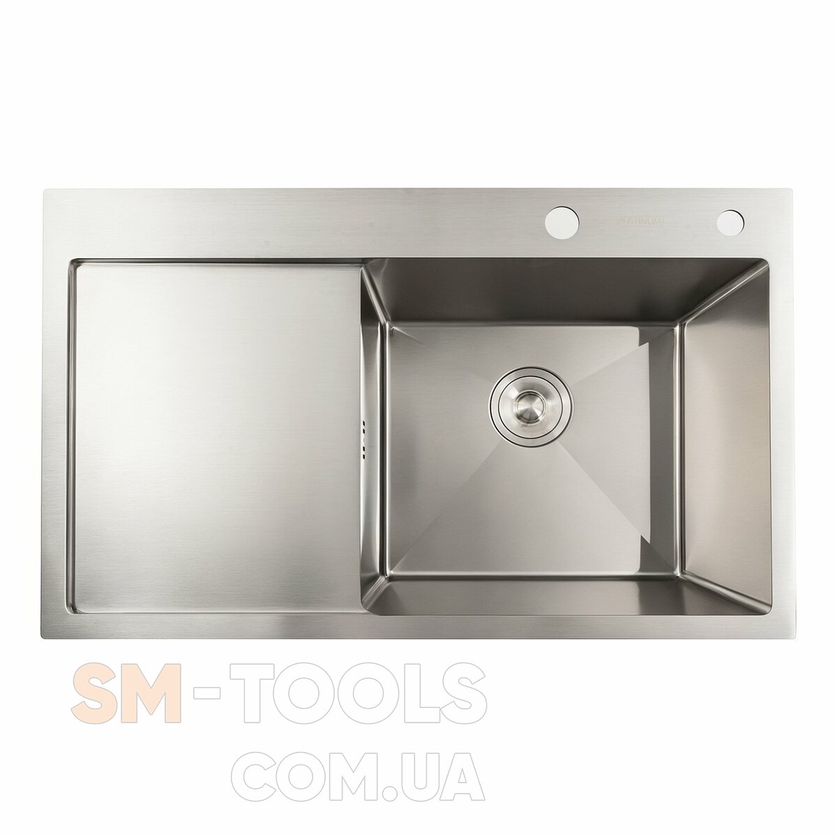 Кухонна мийка нержавійка 78*48 R Platinum Handmade (два отвори, круглий сифон 3,0/0,8)! Ця мийка вражає своєю елегантністю та надійністю, ставши ідеальним вибором для вашої сучасної кухні.