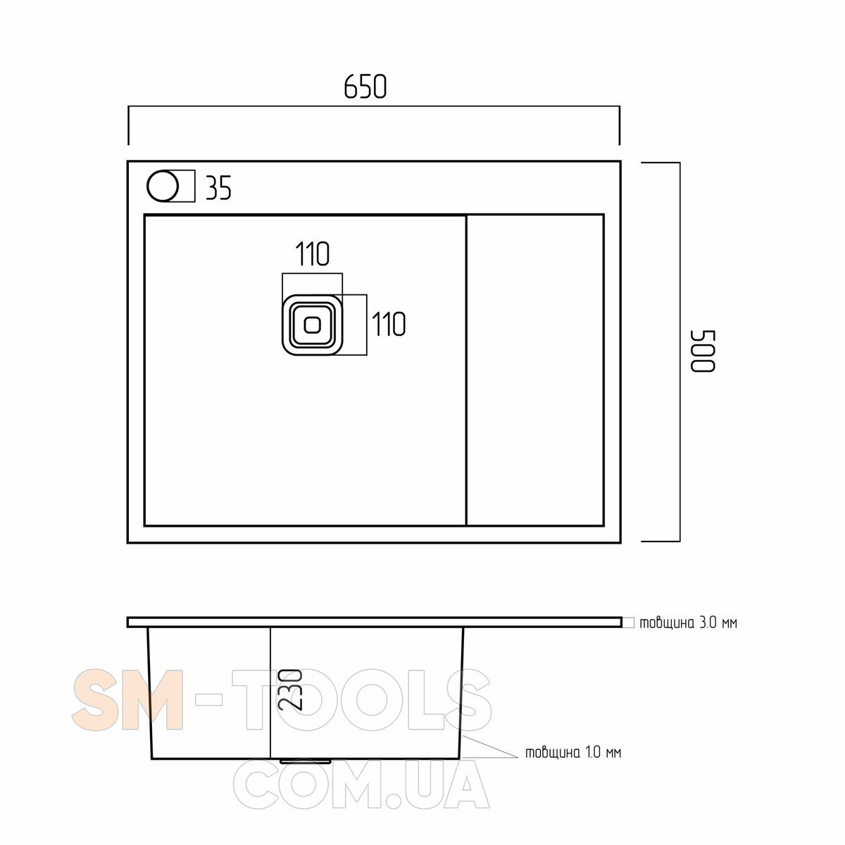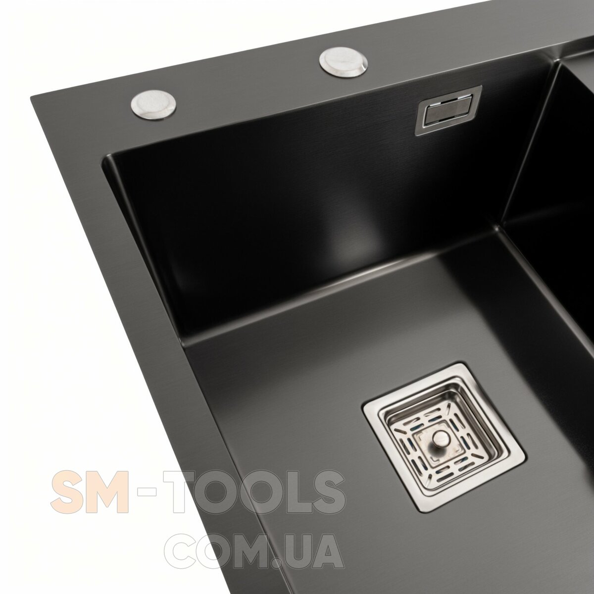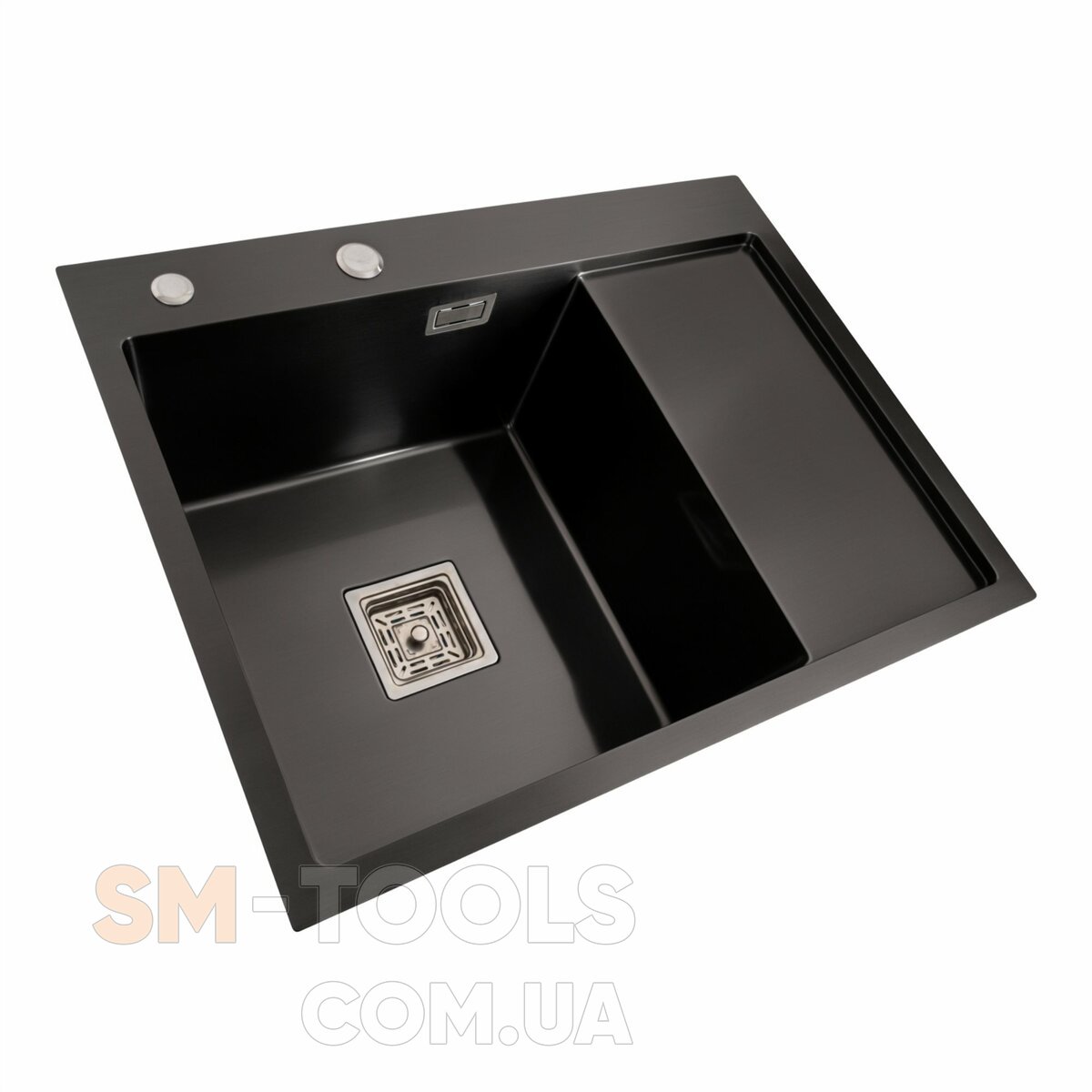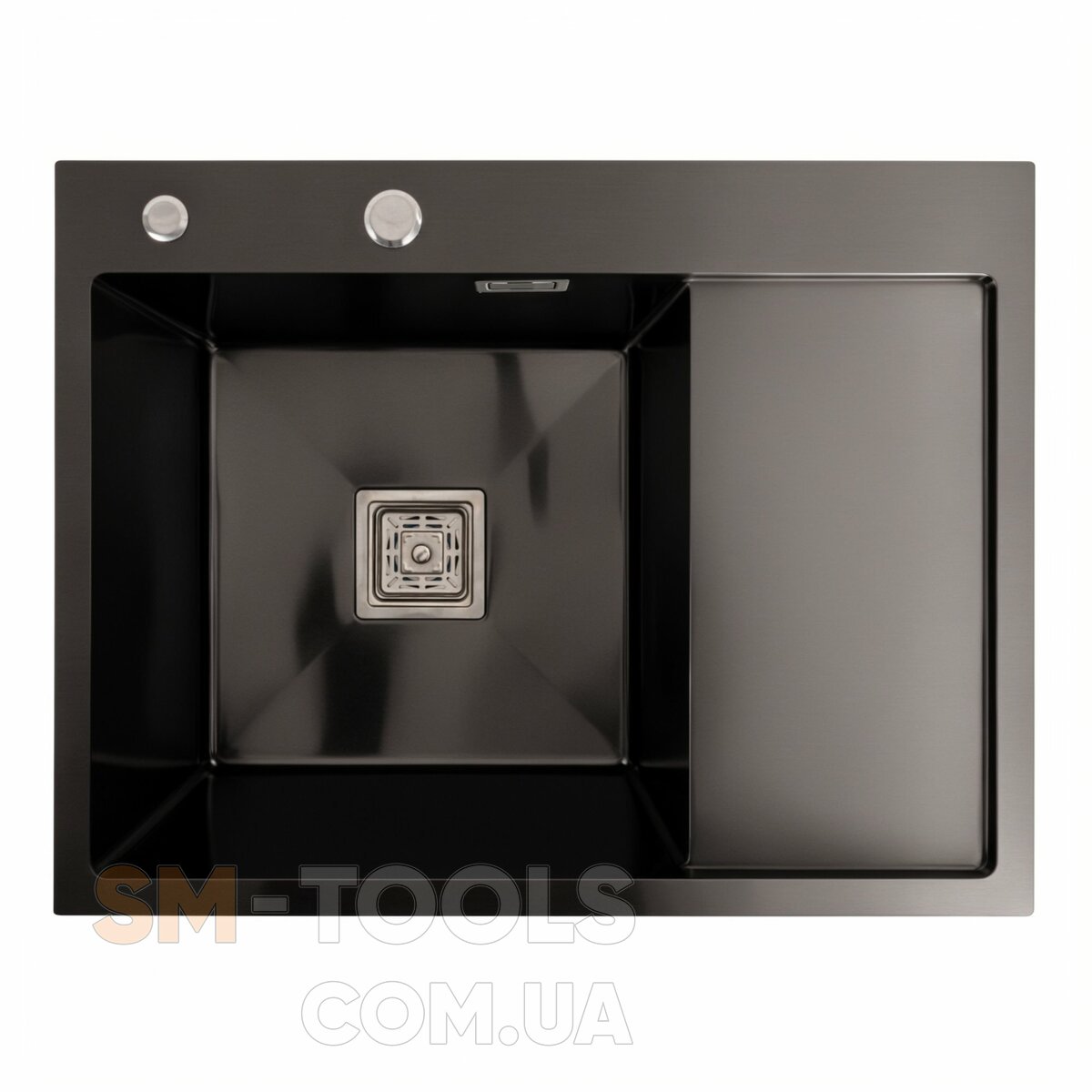 Кухонна мийка чорна Platinum PVD Handmade 65*50 L(квадратний сифон 3,0/1)