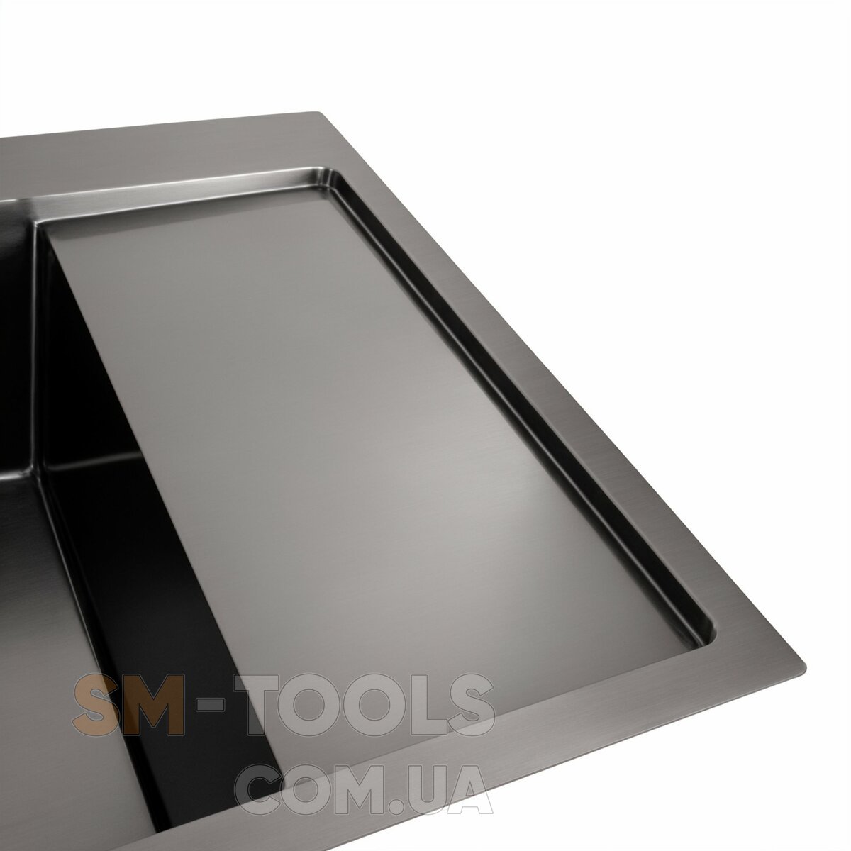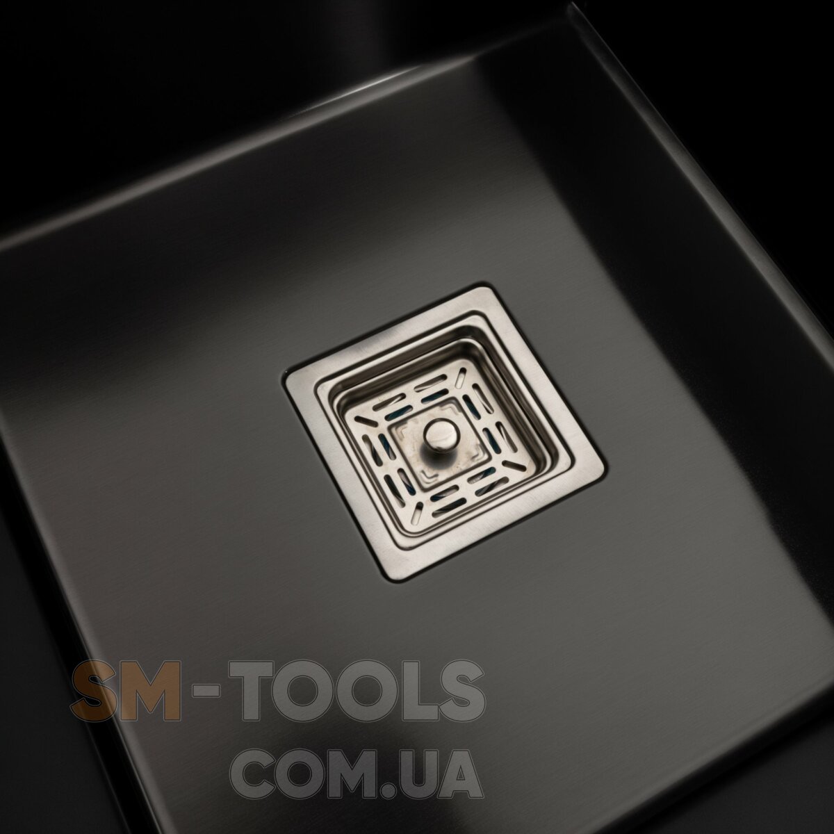 Опис Кухонна мийка чорна Platinum PVD Handmade 65*50 L(квадратний сифон 3,0/1)