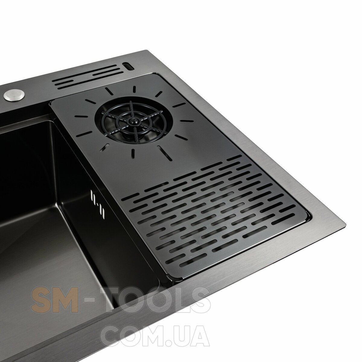 Особливості мийки : отвір під змішувач та дозатор + підставка для ножів