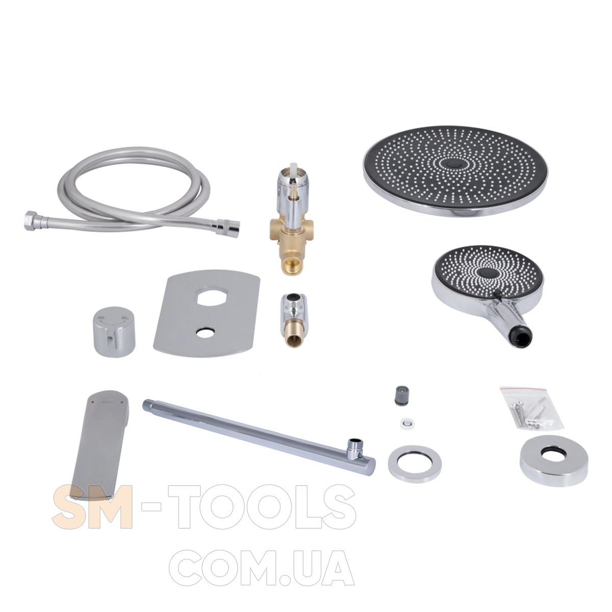 Комплектація : Змішувач, верхній душ, ручний душ, шланг.