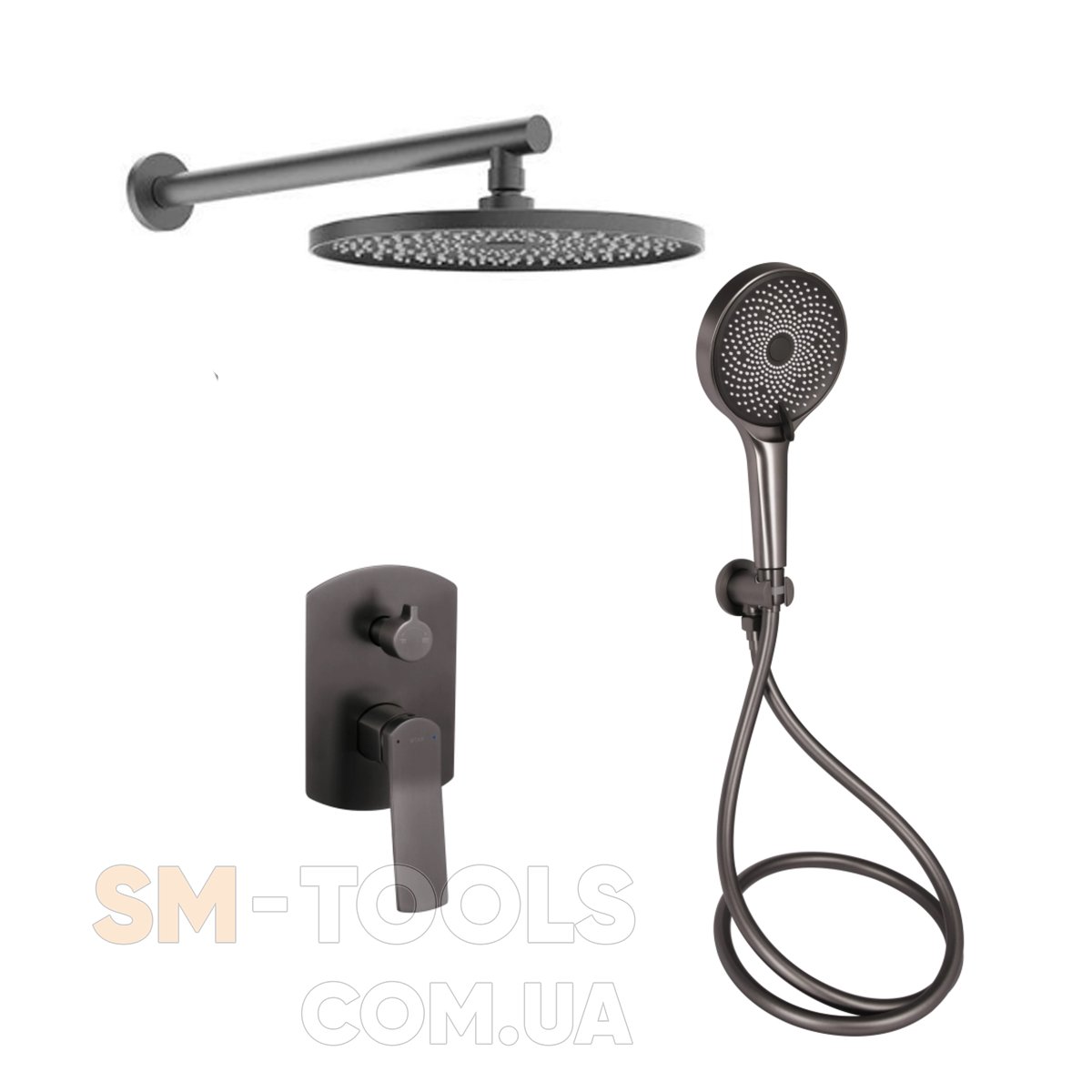 Душова система універсальна Qtap Slavonice прихованого монтажу на два споживача QTSLA113GMB45899 Gunmetal Black PVD