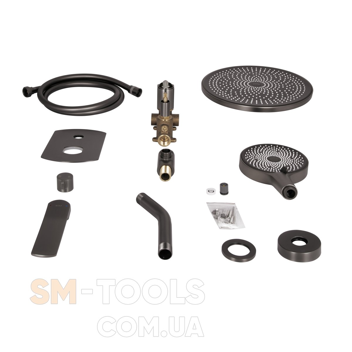 Опис Душова система універсальна Qtap Slavonice прихованого монтажу на два споживача QTSLA113GMB45899 Gunmetal Black PVD