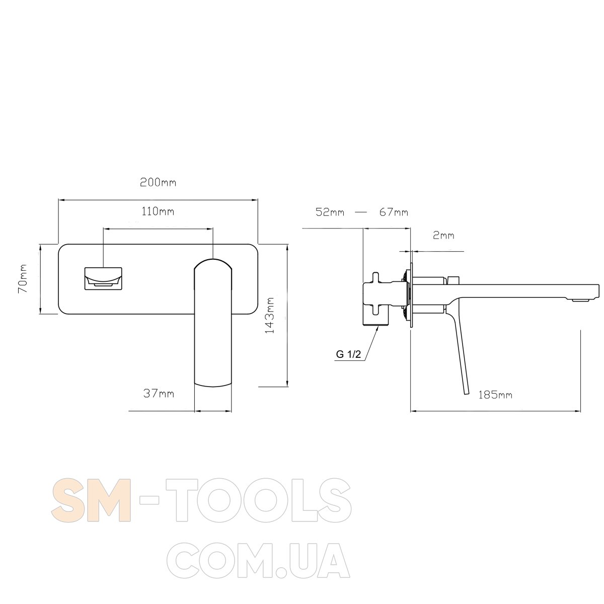 Характеристики Змішувач для раковини Qtap Slavonice прихованого монтажу QTSLA273GMB45920 Gunmetal Black PVD