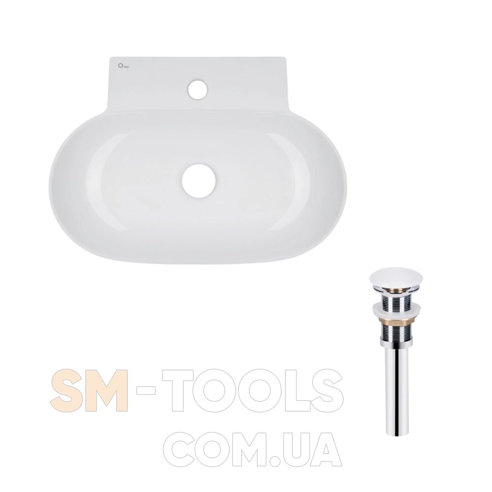 Опис Комплект Qtap Cardinal: Раковина підвісна / накладна овальна 565х400х130 мм White + Донний клапан PU02