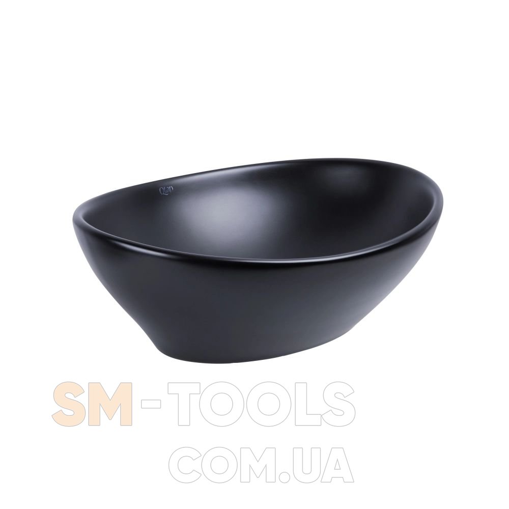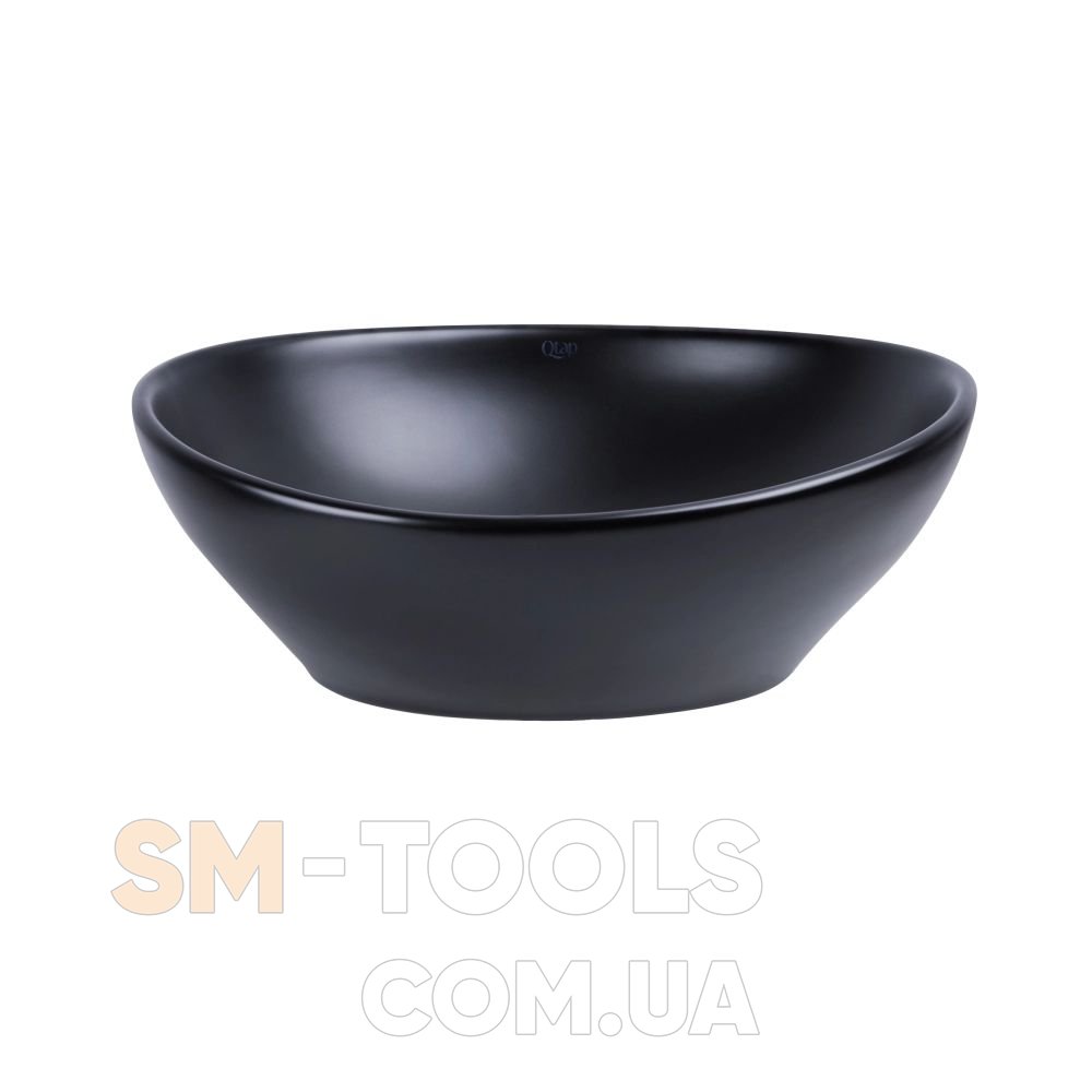 Опис Комплект Qtap Dove: Раковина накладна овальна 410x335x145 мм Matt Black + Донний клапан PU03