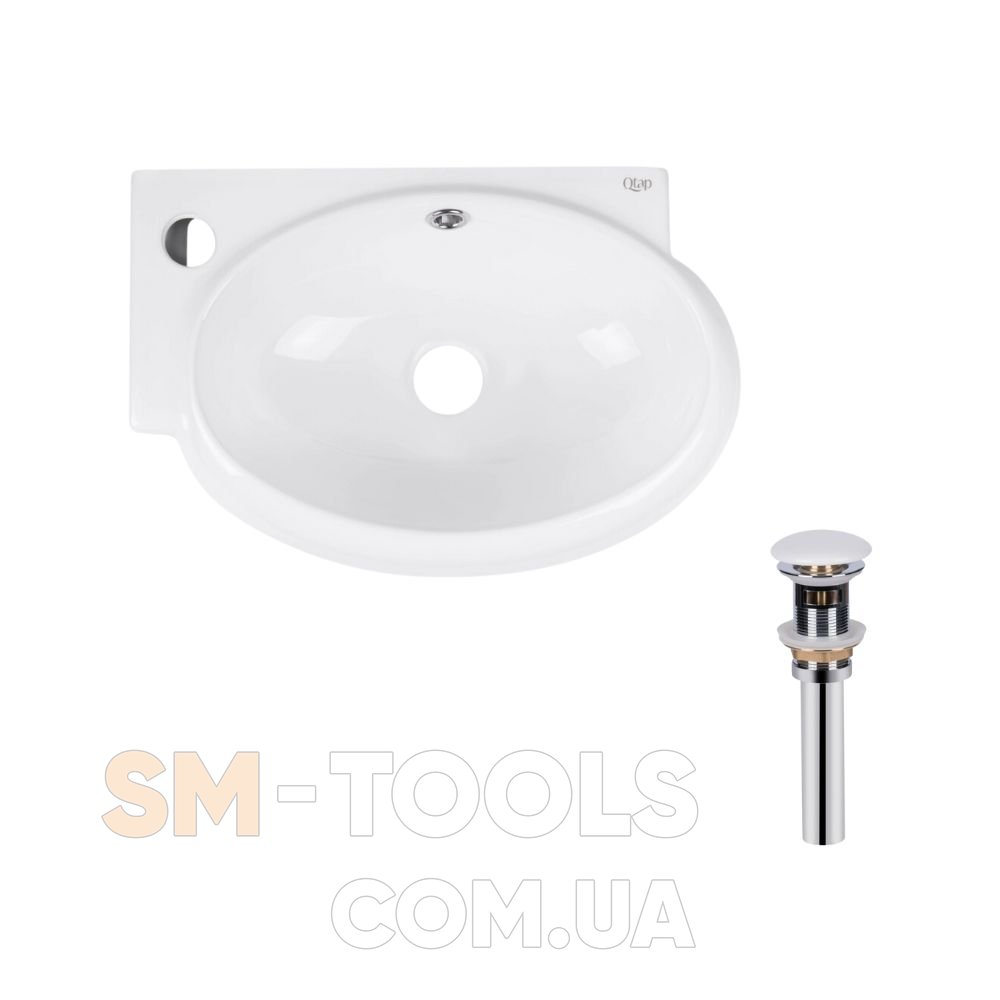 Комплект Qtap Leo: Раковина підвісна овальна ліва 430x290x140 мм White + Донний клапан PU02O