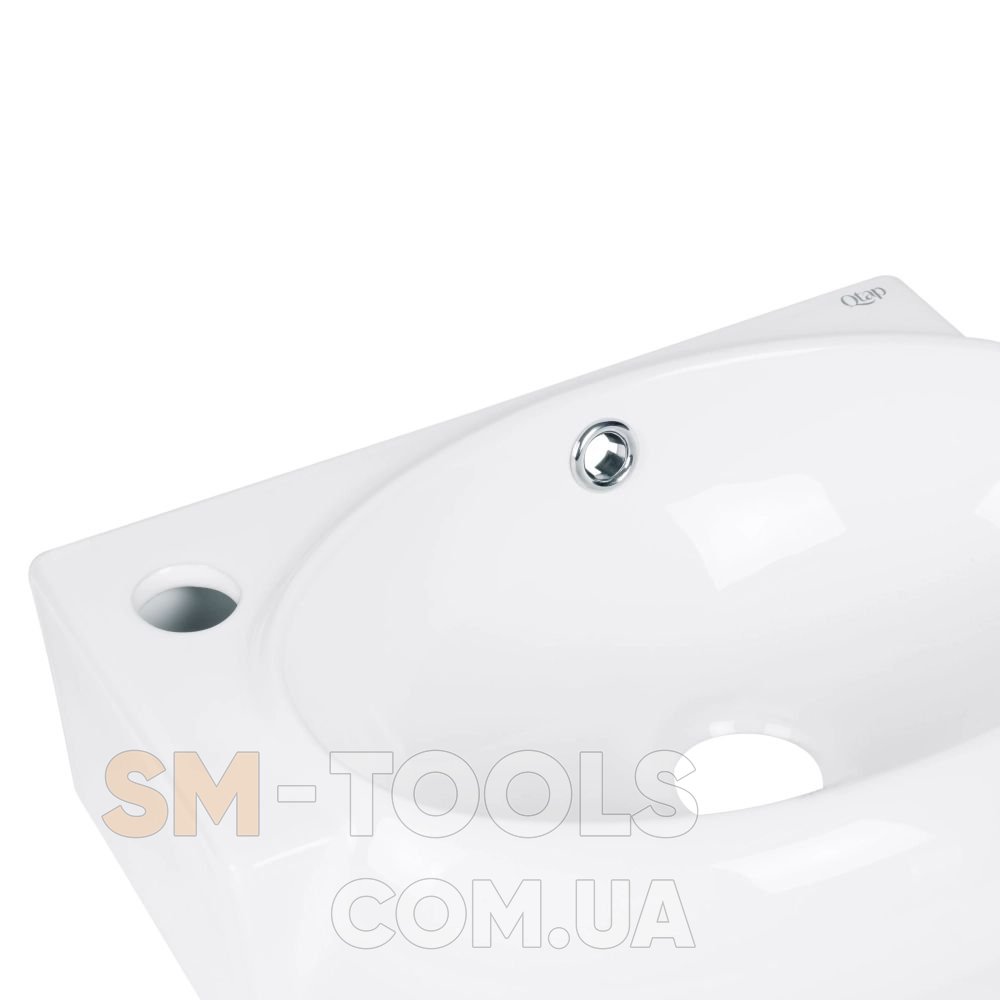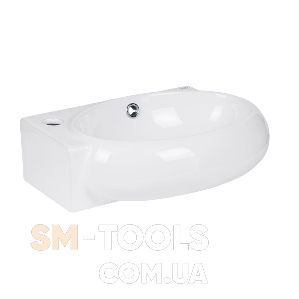 Опис Комплект Qtap Leo: Раковина підвісна овальна ліва 430x290x140 мм White + Донний клапан PU02O
