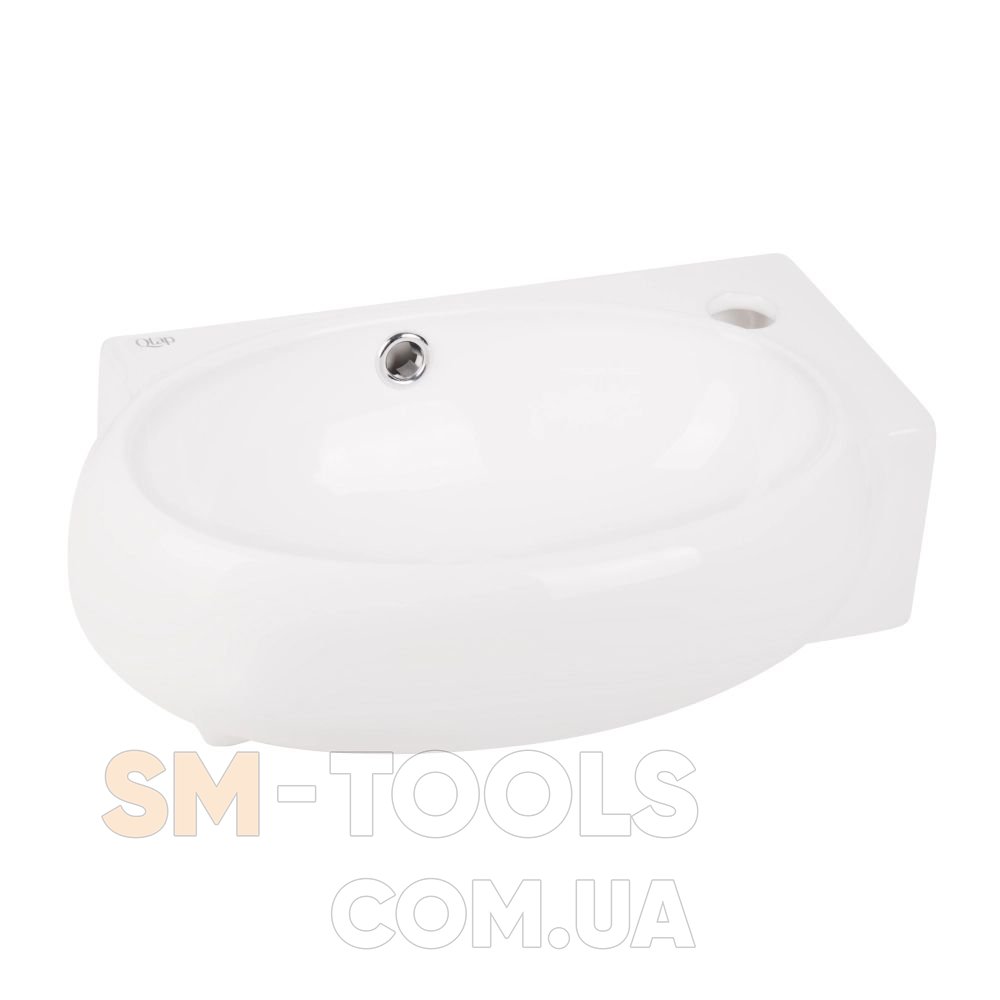 Характеристики Комплект Qtap Leo: Раковина підвісна овальна права 430x290x140 мм White + Донний клапан PU02O