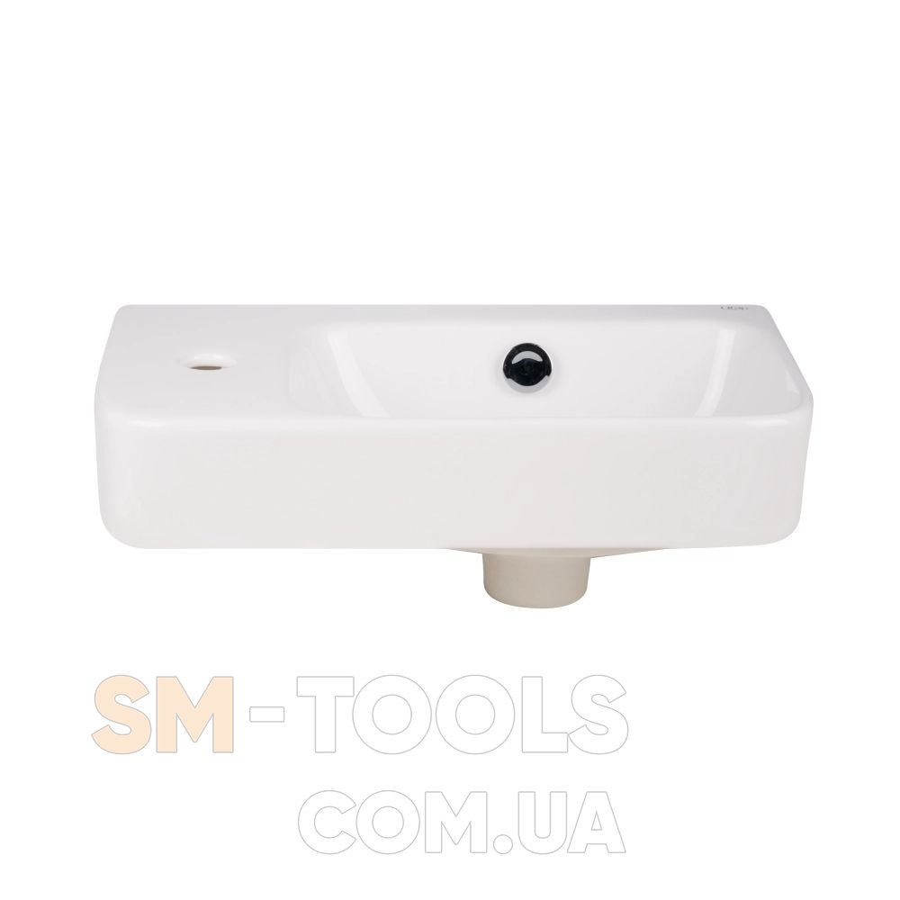 Опис Комплект Qtap Tern: Раковина підвісна прамокутна ліва 450х260х155 мм White + Донний клапан PU02O