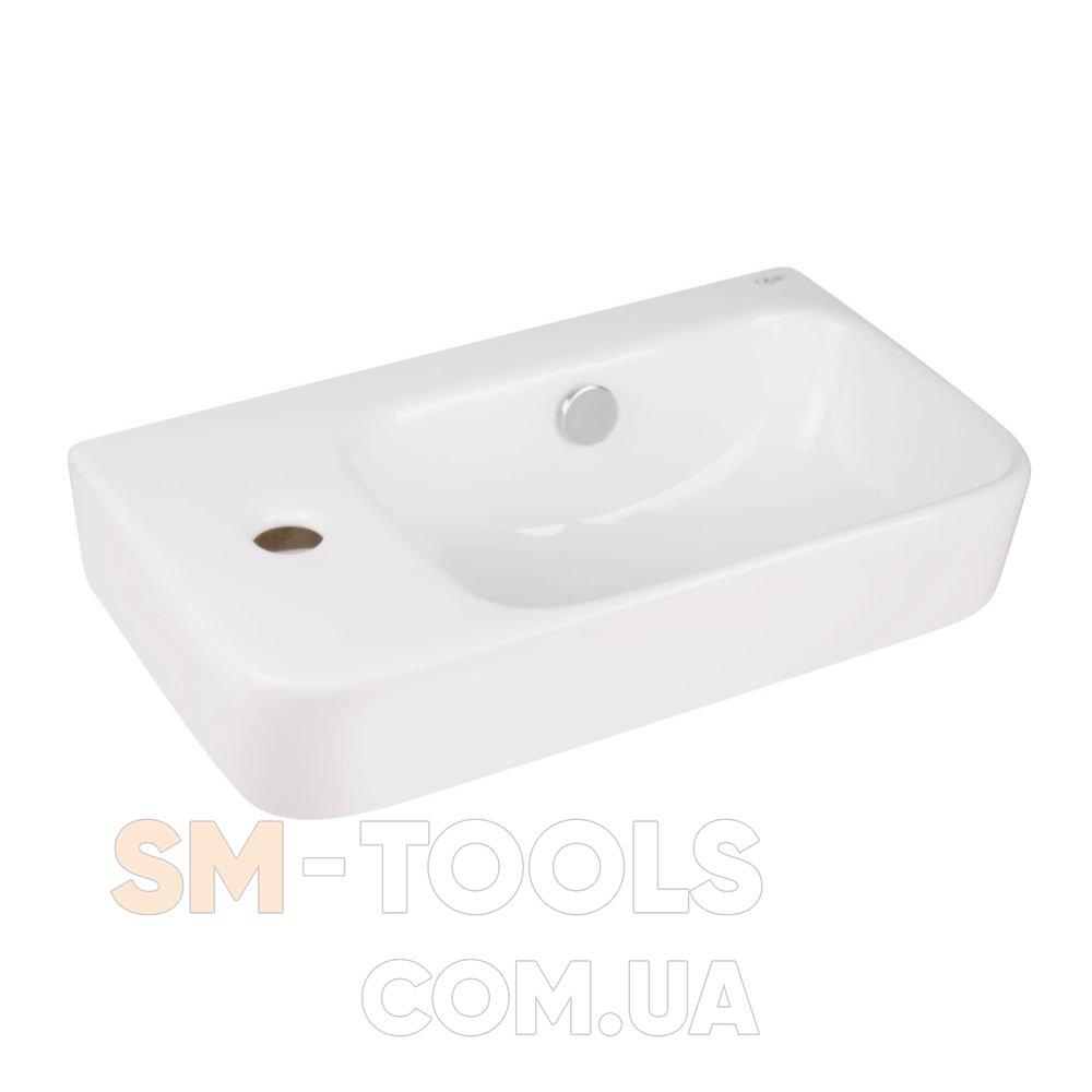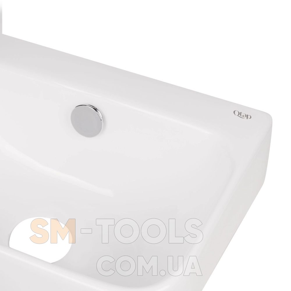 Характеристики Комплект Qtap Tern: Раковина підвісна прамокутна ліва 450х260х155 мм White + Донний клапан PU02O
