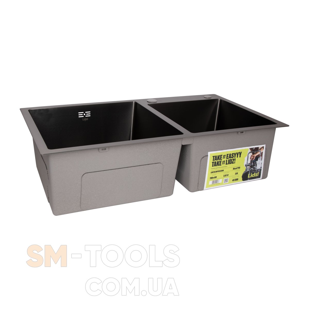 Опис Мийка для кухні з двома чашами інтегрована Lidz Handmade H7843 (LDH7843BPVD45586) Brushed Black PVD 3,0/1,0 мм