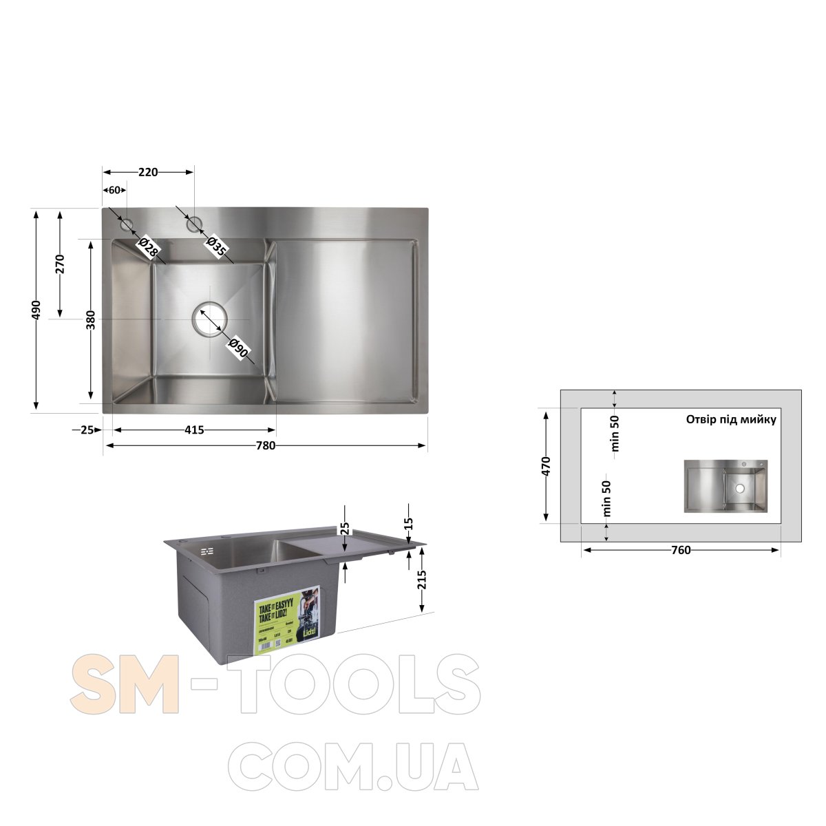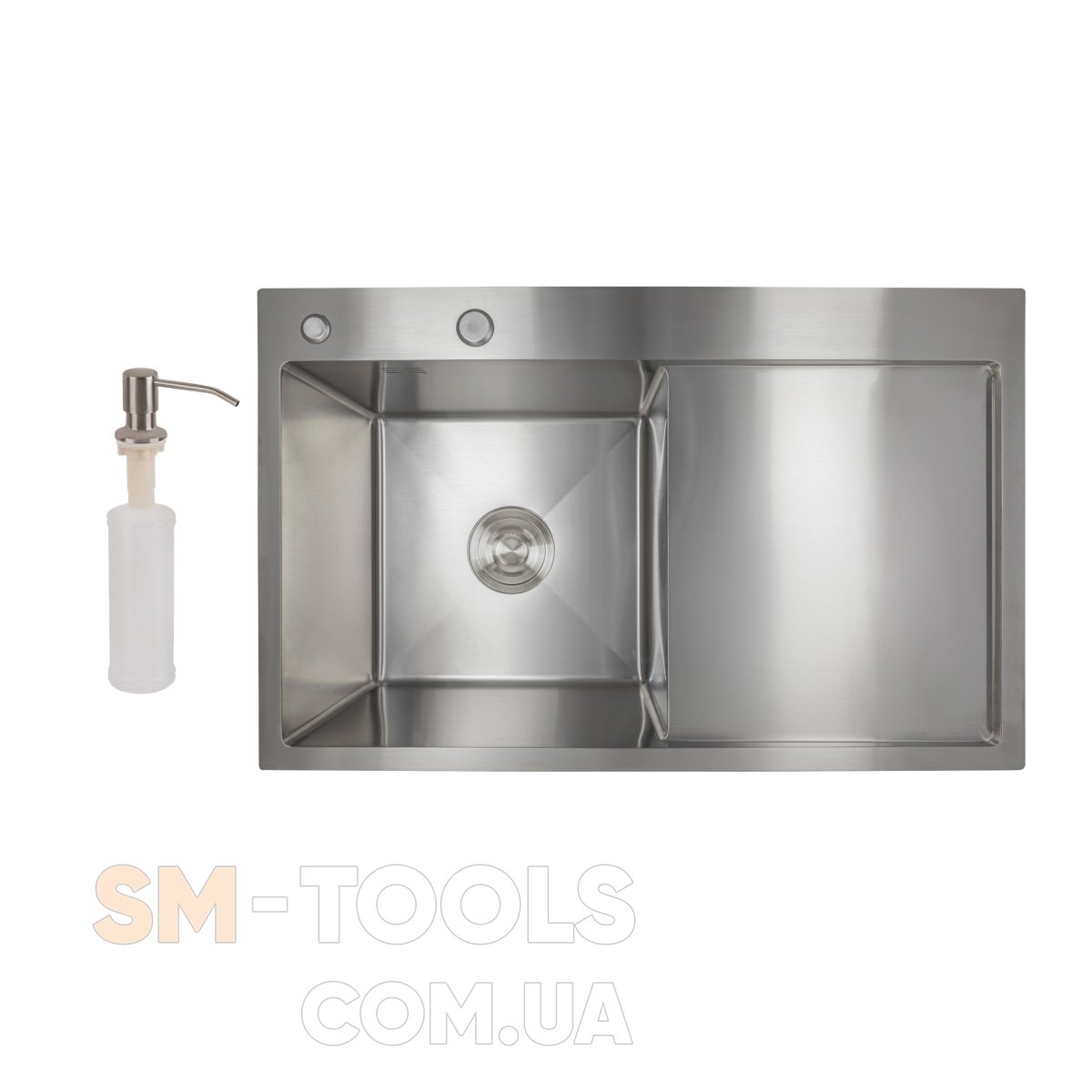 Опис Мийка для кухні інтегрована Lidz Handmade H7849R крило праворуч (LDH7849BRUR45591) Brushed Steel 3,0/1,0 мм