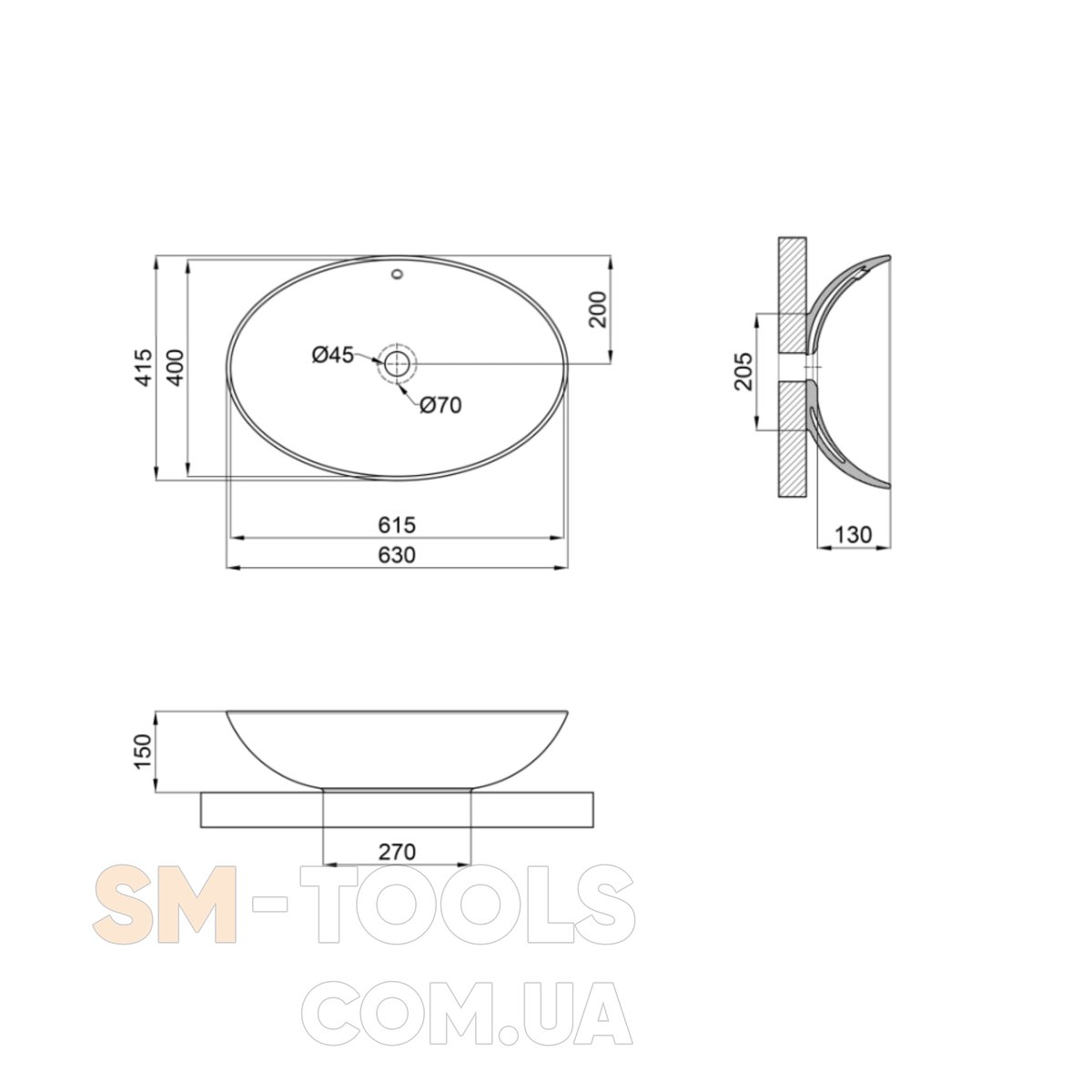 Габаритні розміри виробу (ШхГхВ), мм : 630х415х160