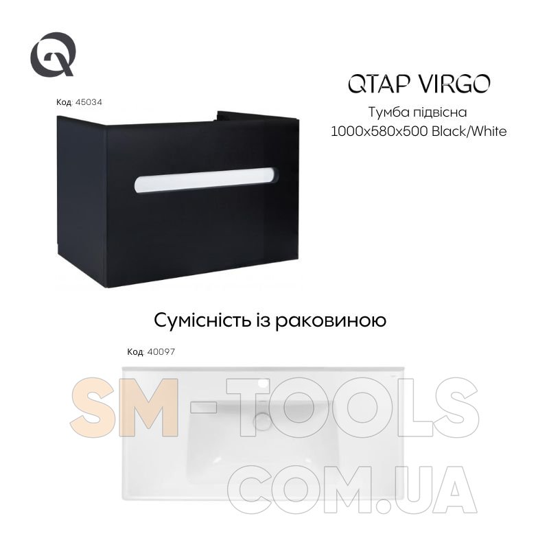 Тумба підвісна Qtap Virgo 1000х580х500 Black/White QT1874TPА1002BW