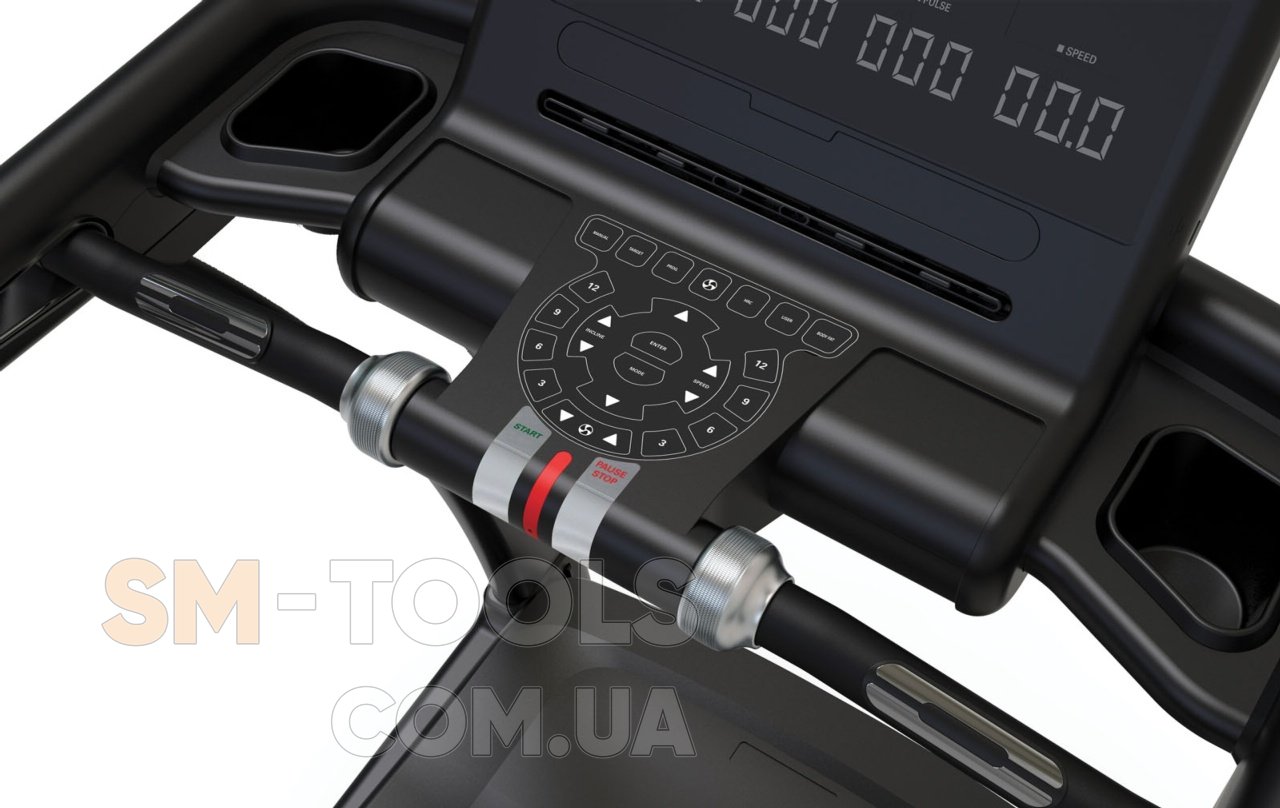 Особливості : Bluetooth-динаміки USB-порт Аварійний ключ Підтримка додатків через APP READY 3.0 Амортизація Вимірювання пульсу Компенсатори нерівності підлоги Підставка для аксесуарів Регулювання кута нахилу Транспортувальні ролики Потужний двигун Нагрудний кардіодатчик (входить у комплект) Сенсорний дисплей Триступеневий вентилятор