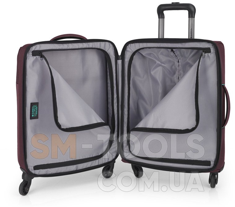 Внутрішній простір розділений перегородкою на два відділення. Завдяки функції розширення можливо збільшити об?єм валізи до 42,6 літра та розмістити ще більше необхідних речей. На фронтальній частині розміщено дві кишені на блискавці.