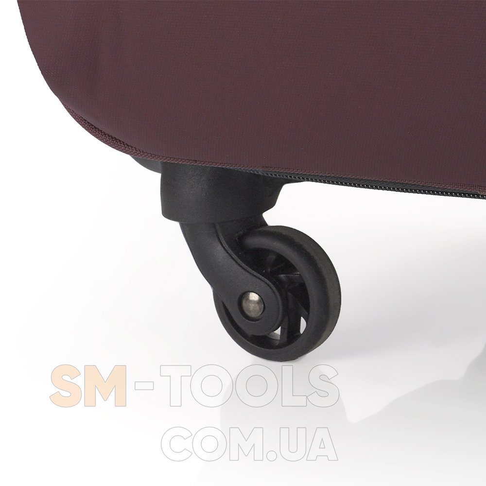 Валіза оснащена чотирма колесами з можливістю розвороту на 360°. Конструкція забезпечує рівномірний перерозподіл навантаження на кожне колесо, що сприяє плавному руху та маневреності валізи. Колеса виготовлені з термопластичного поліуретану (TPU). Цей матеріал має міцність порівнянну з пластиком, гнучкістю силікону, а також підвищену стійкість до перепадів температури та стирання. Завдяки цьому колеса мають тривалий термін експлуатації. Відмінною особливістю коліс із TPU-матеріалу є зниження шуму до мінімуму під час руху валізи нерівною поверхнею.