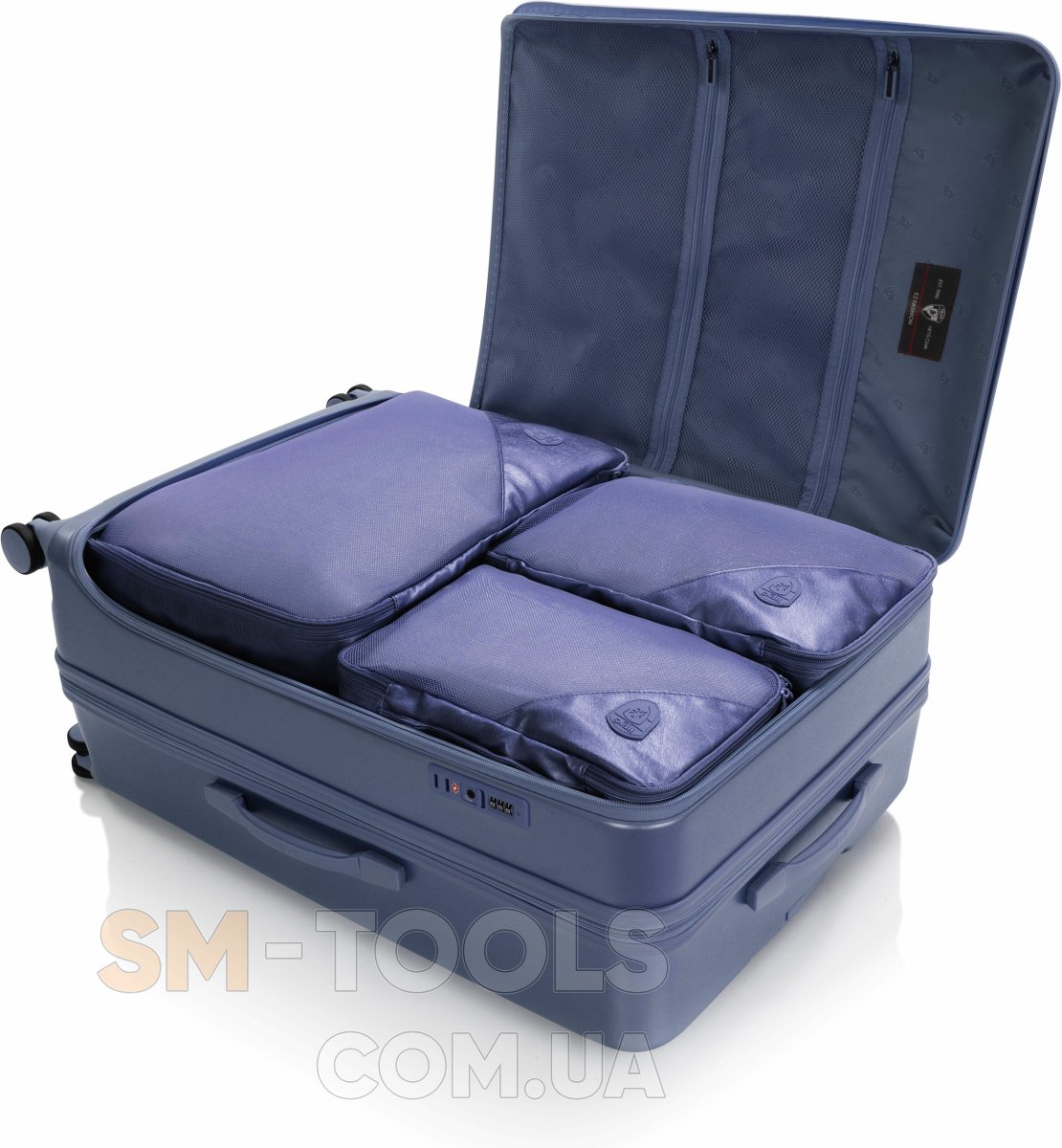 Валіза Heys EZ Fashion (L) Navy (10162-0028-30) на відміну від традиційної конструкції з розділенням 50/50, яка зустрічається в більшості жорстких валіз, відрізняється системою відкривання спереду. Це дає можливість пакування речей вглибину, використовуючи передній клапан. Виготовлена з полікарбонатного композиту: легкого, міцного та ударостійкого матеріалу. Зовнішня поверхня має легке тиснення, що запобігає появі подряпин й потертостей. Внутрішня частина повністю на підкладці. Основне відділення має два еластичні ремені для фіксації речей, що закріплюються застібкою. Також є дві сітчасті кишені для зберігання необхідних дрібниць. Є можливість збільшити корисний об єм валізи до 20% завдяки наявності розширювального клапана.