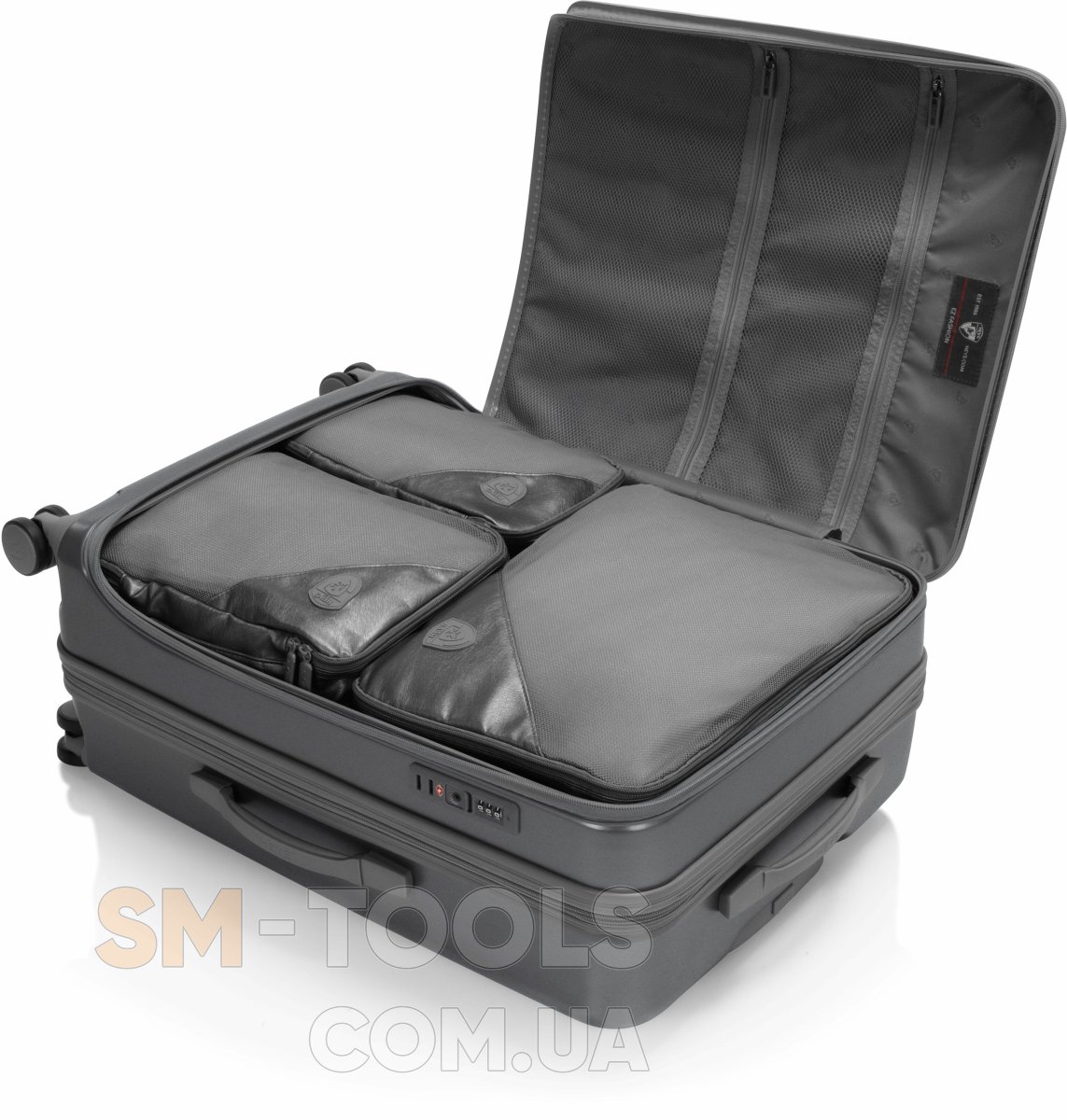 - Еластичні компресійні ремені на фастексах для фіксації багажу всередині валізи.