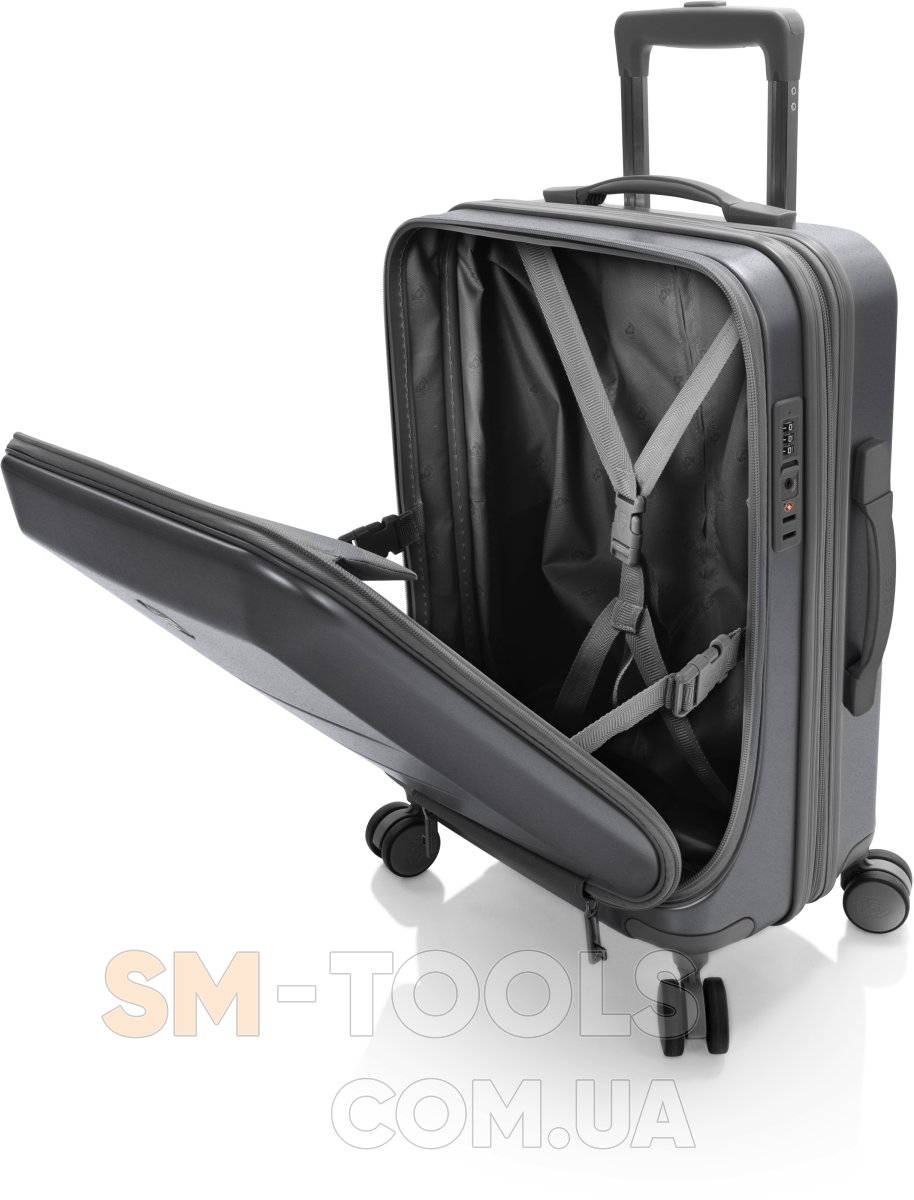 Валіза Heys EZ Fashion (S) Charcoal (10162-0047-21) на відміну від традиційної конструкції з розділенням 50/50, яка зустрічається в більшості жорстких валіз, відрізняється системою відкривання спереду. Це дає можливість пакування речей вглибину, використовуючи передній клапан. Виготовлена з полікарбонатного композиту: легкого, міцного та ударостійкого матеріалу. Зовнішня поверхня має легке тиснення, що запобігає появі подряпин й потертостей. Внутрішня частина повністю на підкладці. Запатентована конструкція з фронтальним доступом забезпечує швидкий і легкий доступ до відділення для ноутбука з пінопластовою підкладкою. Кишеня вміщує ноутбук з екраном до 15,6 дюйма. Є можливість збільшити корисний об єм валізи до 20% завдяки наявності розширювального клапана.