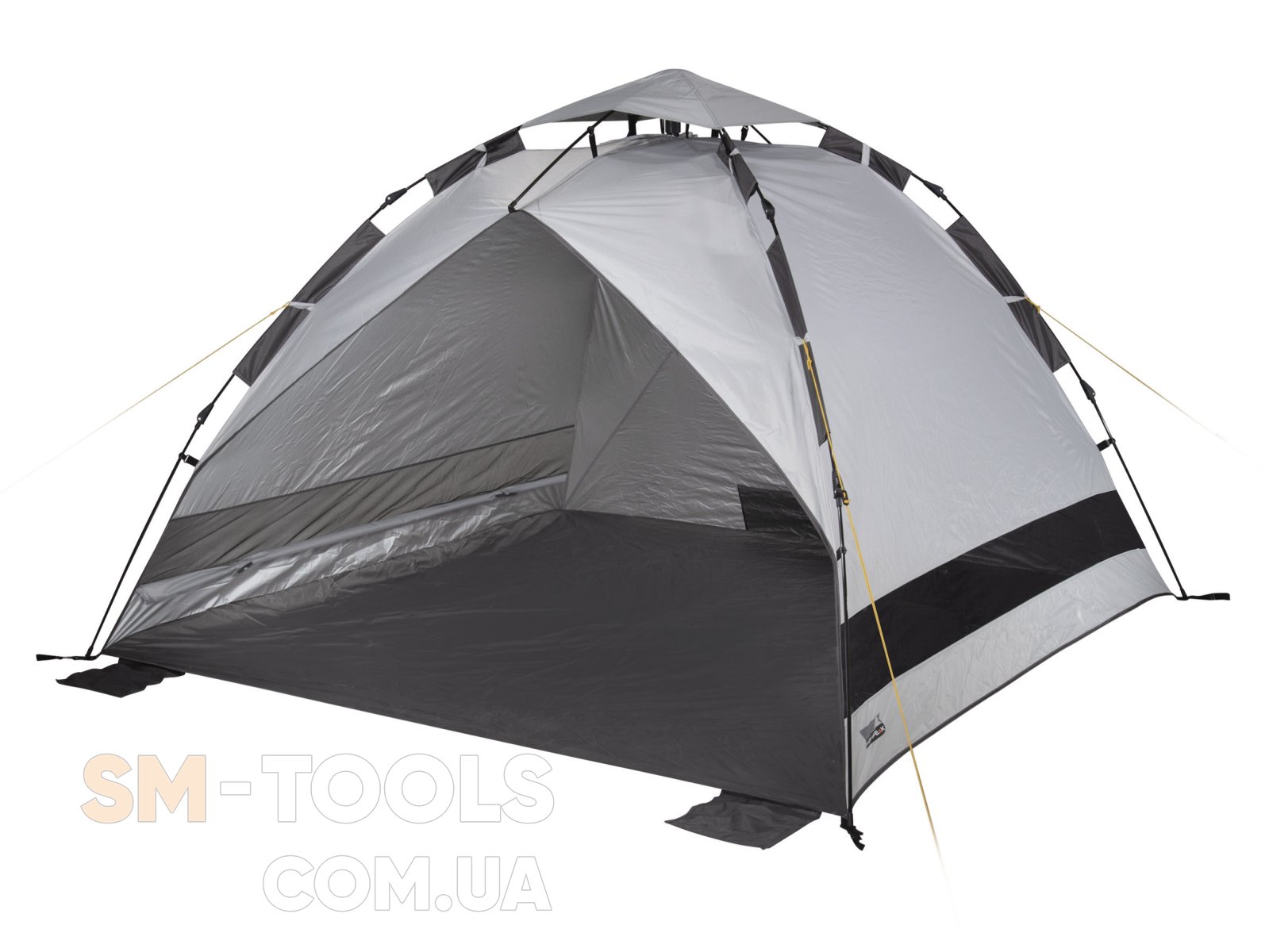 High Peak Calida 80 Aluminium/Dark Grey (10138) - сімейний пляжний намет, який дуже легко складається і розкладається завдяки спеціальній системі складання. Установка намету займає всього 30 секунд, і ваш пляжний відпочинок відразу може починатися. Демонтаж також відбувається набагато простіше і швидше, і ви зможете скласти намет в сумку для перенесення. Зовнішній матеріал із міцної тканини з алюмінізованим покриттям забезпечує максимальний захист шкіри від УФ-випромінювання, а завдяки великій площі підлоги 200 x 200 см вся ваша сім'я поміститься всередині. Сітчасті панелі, що закриваються, забезпечують достатню циркуляцію повітря та запобігають накопиченню тепла в пляжному укритті. Якщо занадто вітряно або ви хочете захистити себе від сторонніх очей, можна просто закрити ці ділянки фіранками. Внутрішня кишеня використовується для зберігання необхідних речей. Чотири кишені для піску утримують намет на ґрунті, а під час сильного вітру відтяжки з пластиковими кілочками забезпечують більш надійну фіксацію.