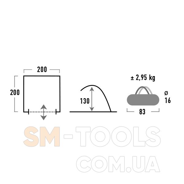 Комплектація : Намет, сумка на блискавці для перенесення, дуги, кілочки, відтяжки, інструкція
