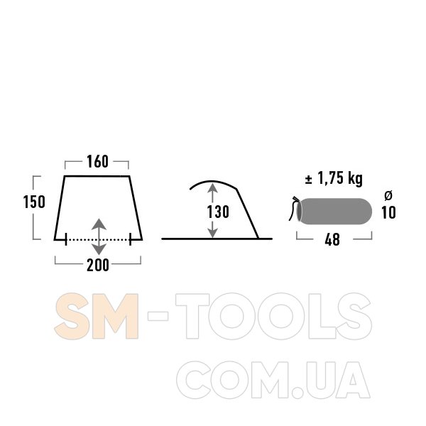 Комплектація : Намет, чохол для перенесення, дуги, кілочки, відтяжки, інструкція