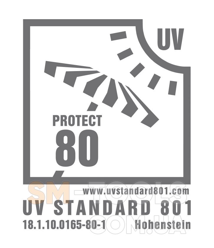 - Фактор захисту від УФ-випромінювання UV80 (UV Standard 801).