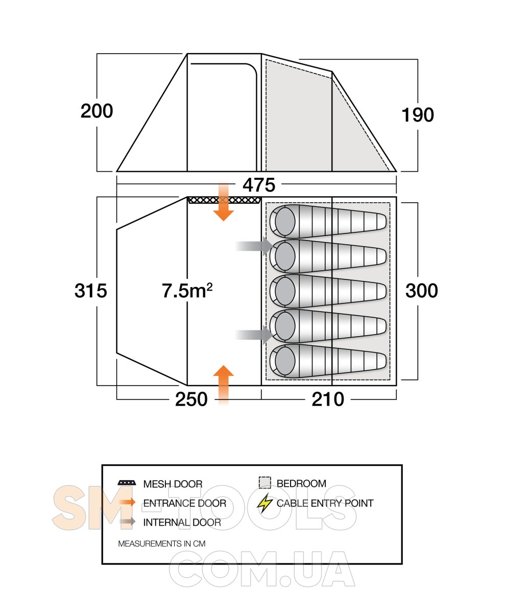 - Waterproof PE Groundsheet - Підлога з міцної тканини, яка витримає найактивніших туристів і створює чисте та сухе місце для зберігання взуття та похідного обладнання.