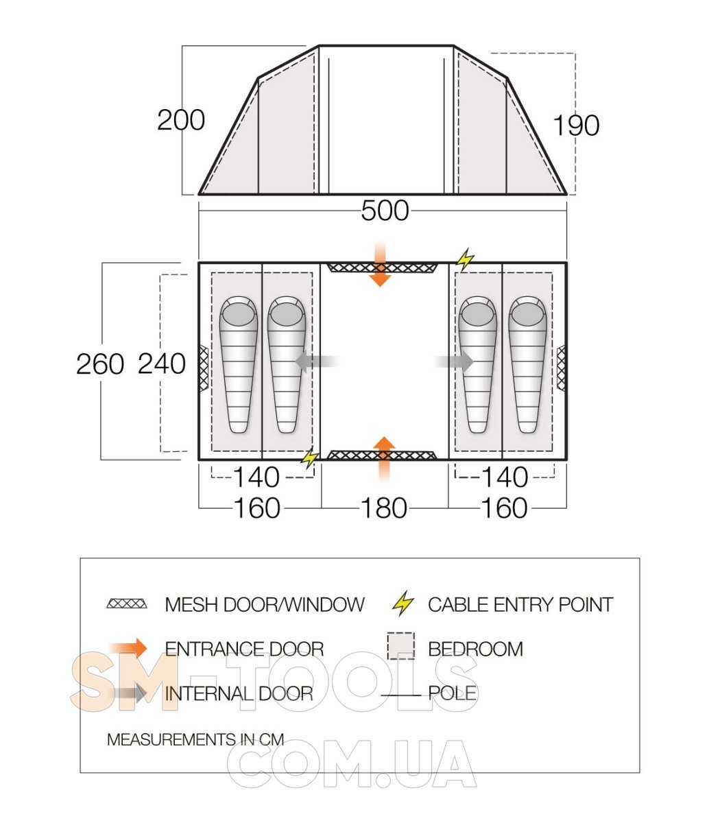 - Waterproof PE Groundsheet - Підлога з міцної тканини, яка витримає найактивніших туристів і створює чисте та сухе місце для зберігання взуття та похідного обладнання.