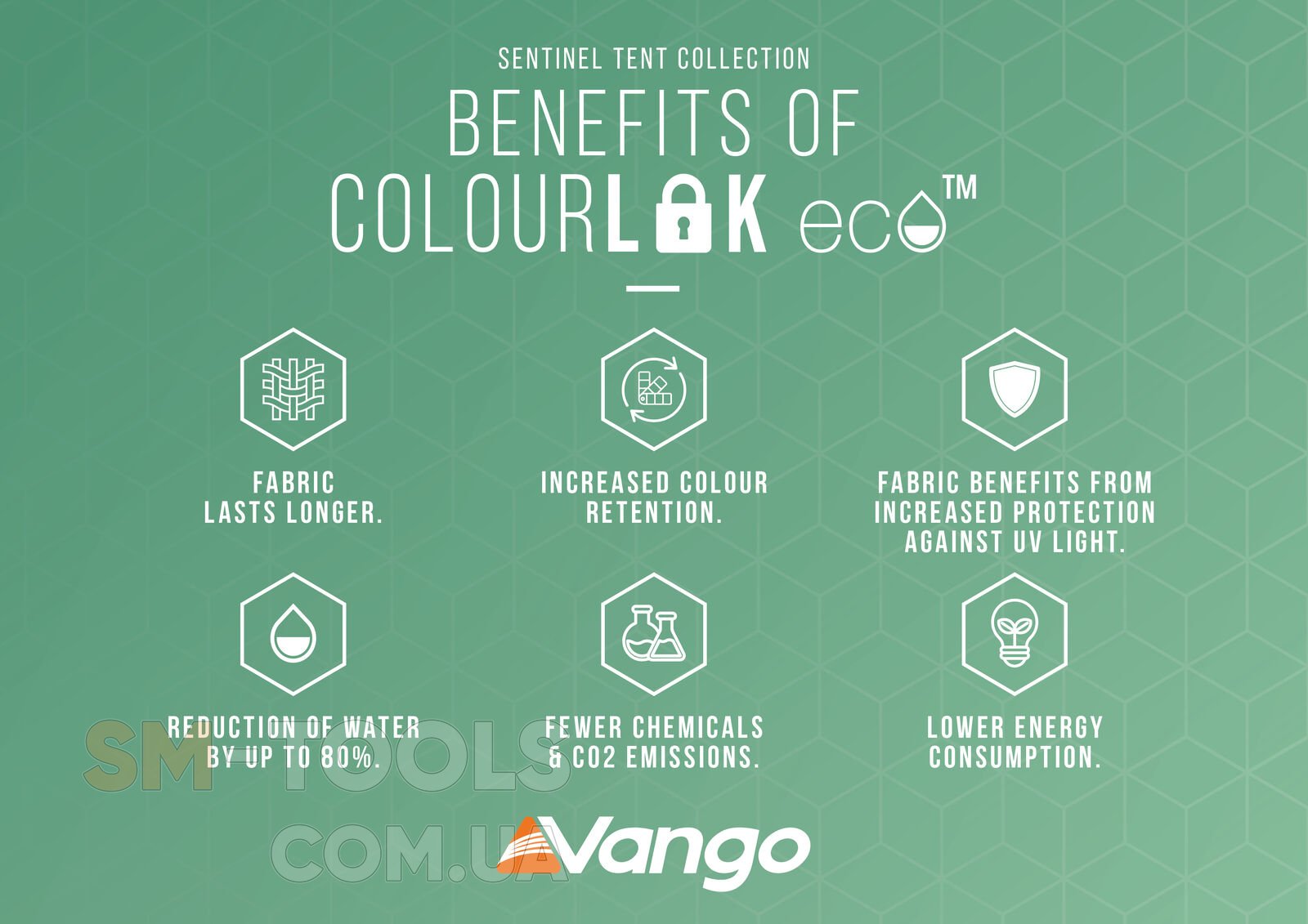 - Повністю протестовано на вітер і дощ (Fully Wind & Rain Tested) - намети Vango пройшли погодні випробування відповідно до стандарту EN ISO 5912. Цей намет підходить для використання в сиру погоду. Слід уникати штормів та екстремальних погодних умов.