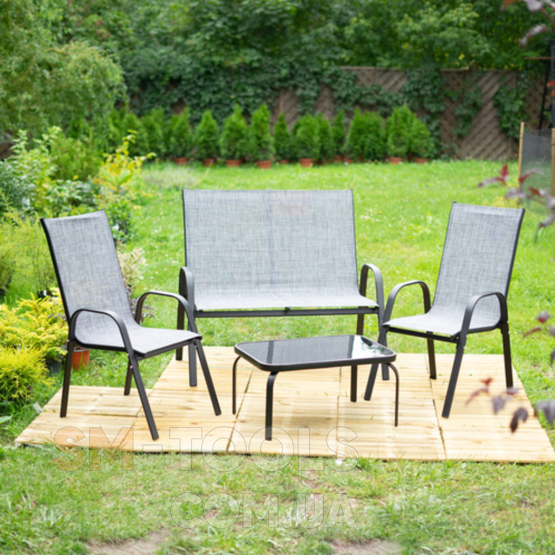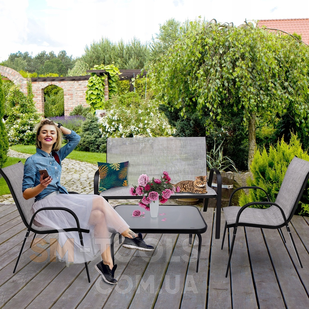 Відпочинок на природі завжди дарує нам неймовірні враження та емоції. Насолоджуйтеся кожною миттю серед зелених насаджень, співу птахів та шепоту вітру. Нехай ваші дні наповнюються затишком та спокоєм з садовим комплектом FIESTA - меблі, що перетворять ваш сад, балкон або дачу в оазис затишку та комфорту! Виготовлені садові меблі Jumi з високоякісного текстилю та металу, забезпечуючи тривалу експлуатацію та стійкість до будь-яких погодних умов. Що особливо приваблює - це скляна стільниця столу, що додає елегантності та легкого догляду. А компактність набору меблів дозволяє легко вписуватися в будь-який сад, балкон або терасу, забезпечуючи при цьому комфорт та стиль.