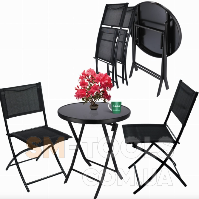 Вам набридли однотипні садові меблі, які не додають затишку вашому простору? Набір садових меблів Jumi, що включає стильний стіл та два зручних стільці, стане справжньою окрасою вашого саду чи тераси. Цей набір поєднує в собі елегантність та функціональність, створюючи ідеальні умови для відпочинку на свіжому повітрі. Чорний колір комплекту додає вишуканості та гармонійно вписується в будь-який ландшафтний дизайн. Легкість у використанні та висока якість матеріалів гарантують, що ви зможете насолоджуватись комфортом довгі роки. Відчуйте справжній релакс з садовими меблями Jumi!