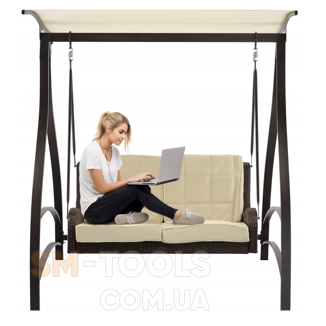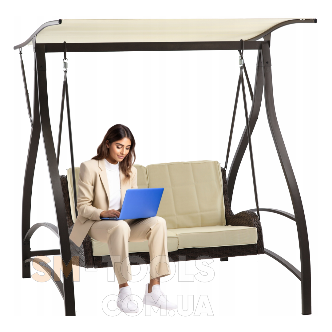 Уявіть собі місце, де кожен ваш відпочинок перетворюється на магічний момент релаксації та гармонії. Садова гойдалка Chomik Garden Line ANDRIA - це не просто елемент декору вашого саду чи тераси, а символ елегантності та комфорту. Завдяки витонченому дизайну і м'яким подушкам - гойдалка стане вашим улюбленим місцем для відпочинку. Чи то читання улюбленої книги, спілкування з друзями, чи просто моменти споглядання природи - ANDRIA забезпечує ідеальні умови для цього. Кожен її елемент, від довговічного техноротангу до надійного регульованого козирка, говорить про неперевершену якість та дбайливе ставлення до вашого комфорту. Виготовлена з високоякісного техноротангу коричневого кольору, не лише стоїть на сторожі вашого комфорту, а й прикрашає собою будь-який простір.