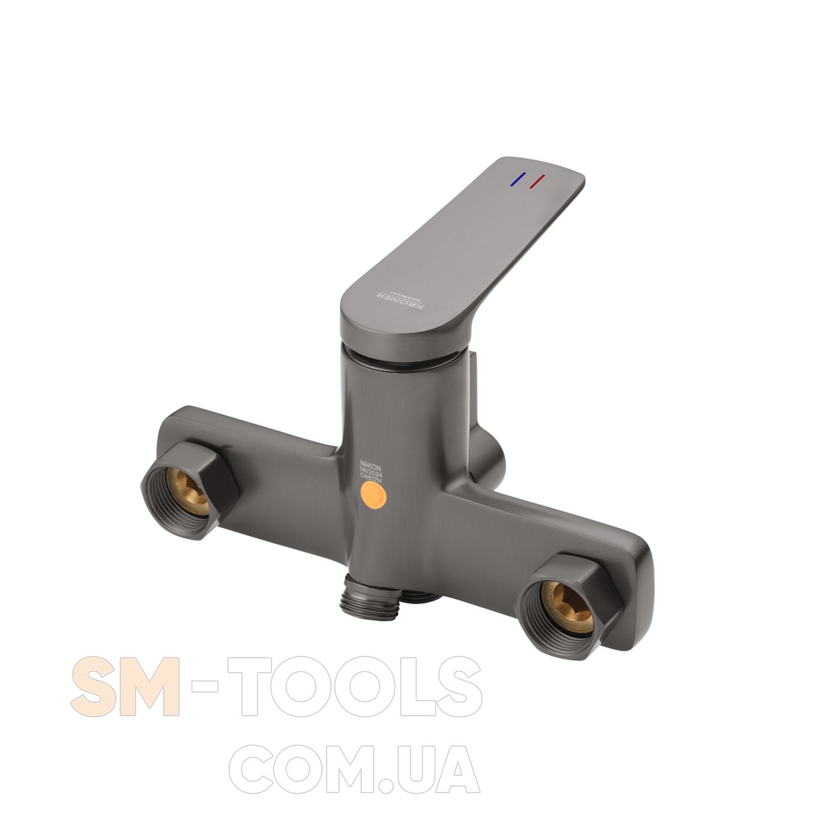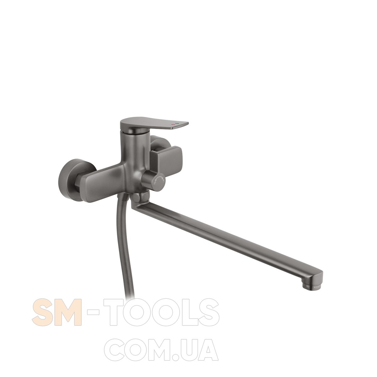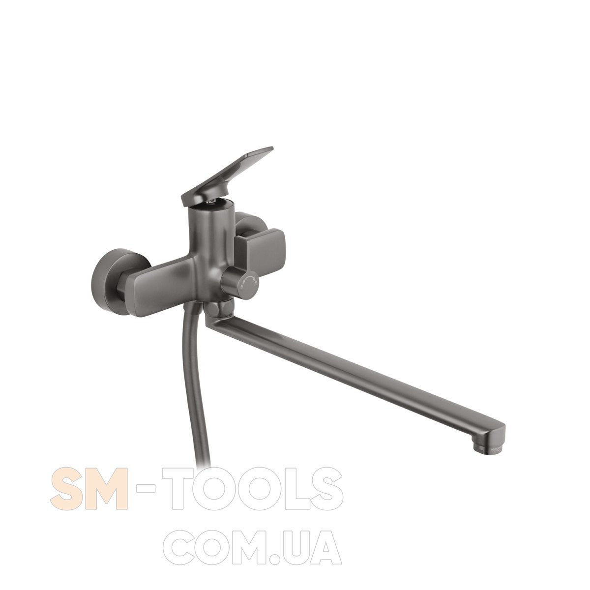 Змішувач виготовлений із міцної латуні, що гарантує довговічність і стійкість до корозії. Матова поверхня в графітовому кольорі надає виробу сучасного та витонченого вигляду, який ідеально доповнить будь-який інтер’єр. Настінний спосіб монтажу забезпечує надійність установки та зручність у користуванні.