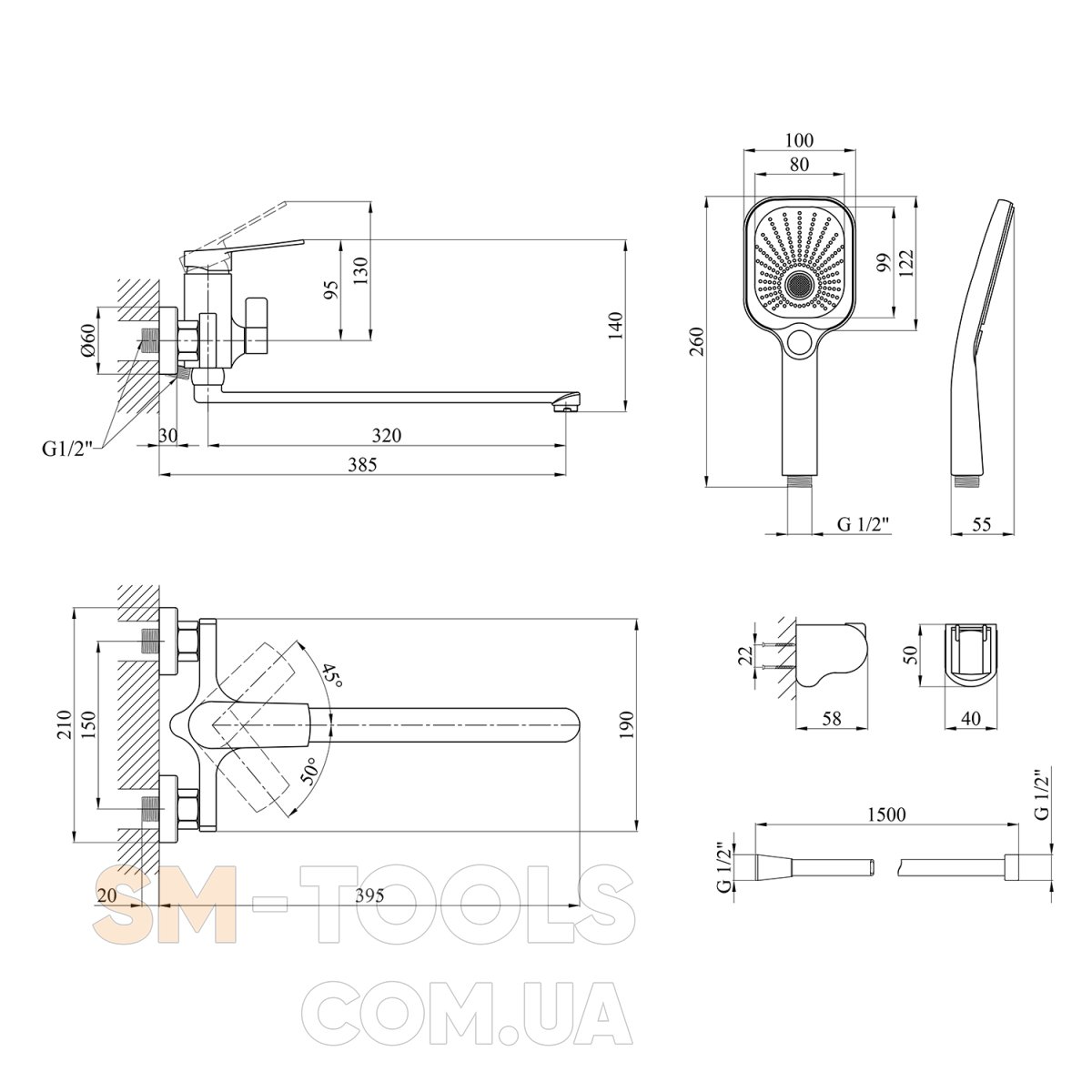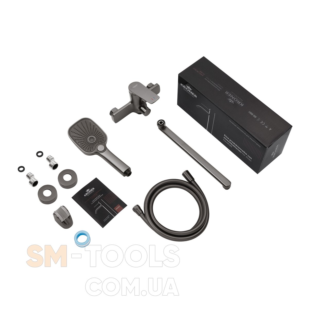Комплектація : Змішувач, лійка для ручного душу, душовий шланг, кронштейн для ручного душу, кріплення, інструкція.