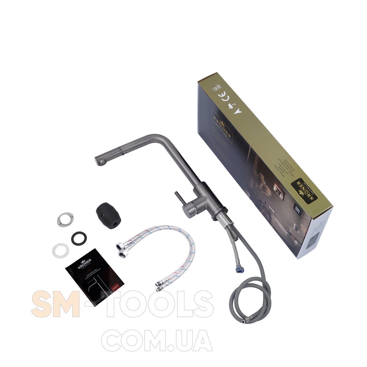 Опис Змішувач для кухні з висувним виливом Kroner KRPё Edelstahl Klassisch - PVD03917