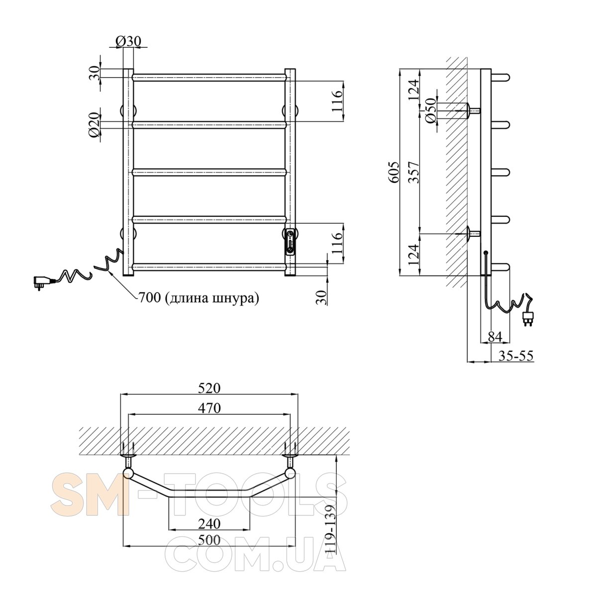 Опис Сушарка для рушників електрична Kroner Трапеція ДТ22EL 600х500/5 EL