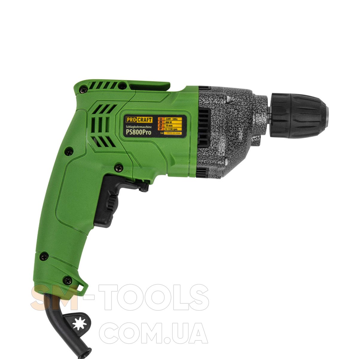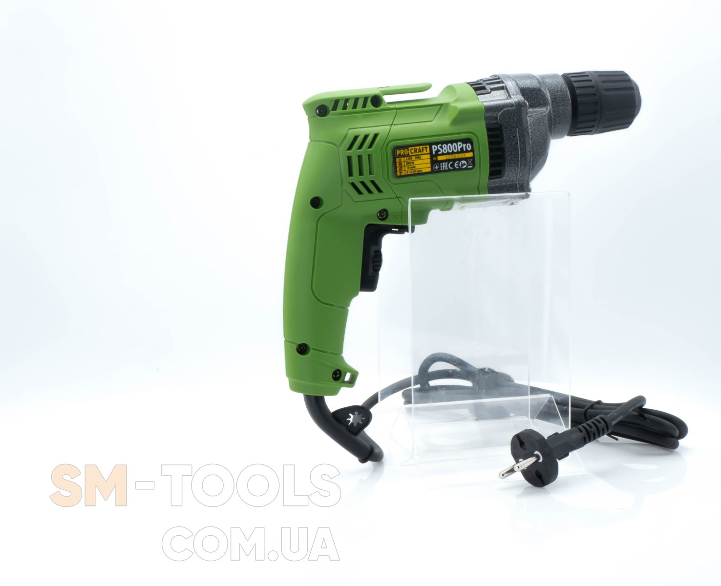 Дриль Procraft PS800PRO - це безударний компактний пристрій, призначений для виконання робіт при будівництві, ремонті. Завдяки універсальності може застосовуватися в якості шурупокрута. Особливості пристрою Ударний дриль використовується для пробивання отворів: У дереві; У металі; У цеглі і т.ін. Знижуючи інтенсивність обертів, можна використовувати її як шурупокрут. Для регулювання можна задіяти спеціальне колесо або кнопку. Задавши необхідну інтенсивність обертів, їх фіксують в потрібному положенні. При невеликій вазі пристрій відрізняється підвищеною потужністю. Крильчатка дрилі модернізована, що допомагає запобігти потраплянню на обмотку бруду і пилу. Зручність застосування Конструкція доповнена прогумованою ручкою, яка щільно тримається в долоні і не вислизає в спеку або при попаданні вологи на поверхню. Двигун захищений мідною обмоткою - вона не допускає перегрівання і продовжує термін служби приладу в кілька разів порівняно з аналогічними моделями. Невеликі розміри і вага при отриманні високої потужності забезпечують більший комфорт для оператора при роботі з інструментом.