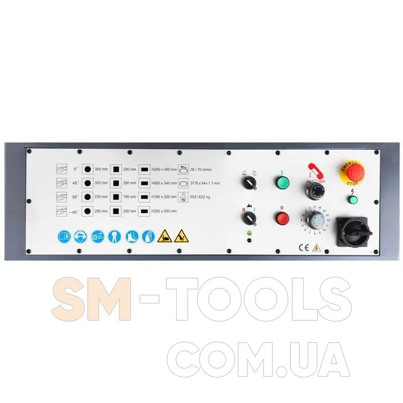 Ергономічна панель керування містить чітко розташовані кнопки для основних функцій: запуску, зупинки, регулювання швидкості стрічки (35/70 м/хв), активації системи охолодження. Також передбачений аварійний вимикач, що відповідає сучасним стандартам безпеки ЄС.